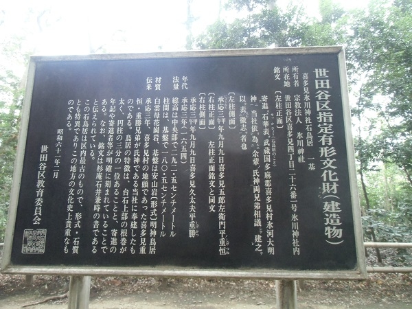 石造りの二の鳥居は承応3年に奉建されたもので、区内最古のものだそうです。