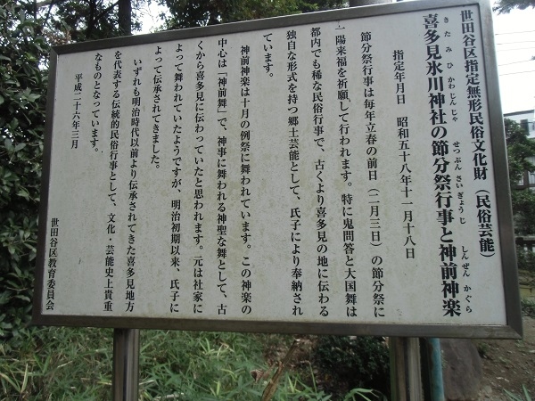 節分祭行事と神前神楽は、とても賑やかなもので、区の無形民俗文化財です(説明板あり)。
