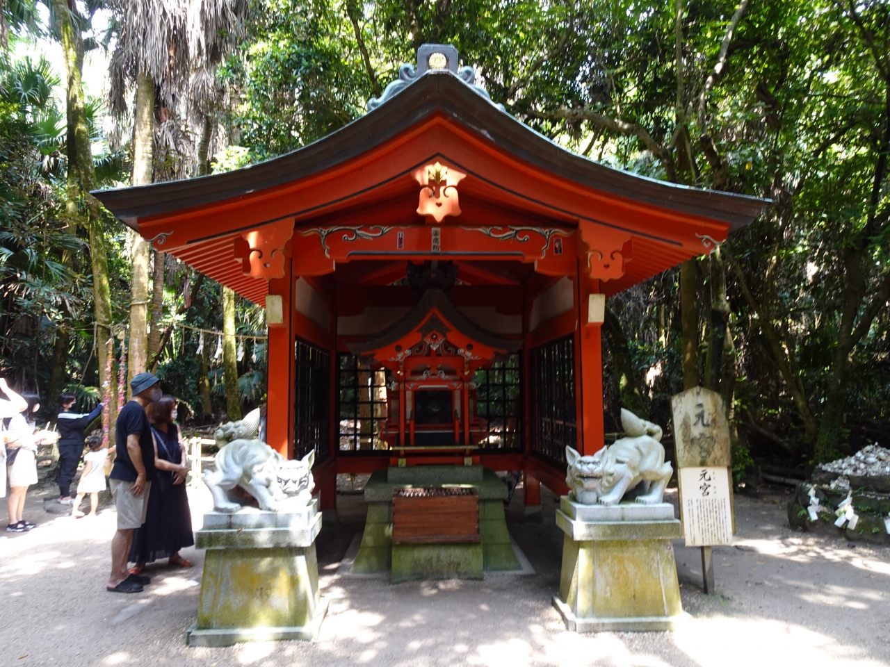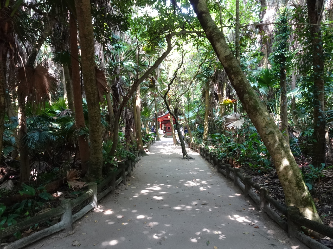 宮崎の青島の中央に鎮座している青島神社。亜熱帯植物に囲まれ、神秘的な雰囲気でした。彦火火出見命と豊玉姫命夫婦を祀っていることから、縁結びや安産、航海安全にご利益があると言われています。御本殿の参拝後、右側の道を通って行くと元宮が建っています。そこまでの道が南国そのもの。亜熱帯植物に囲まれて、とても神秘的です。ぜひ、参拝してください!。