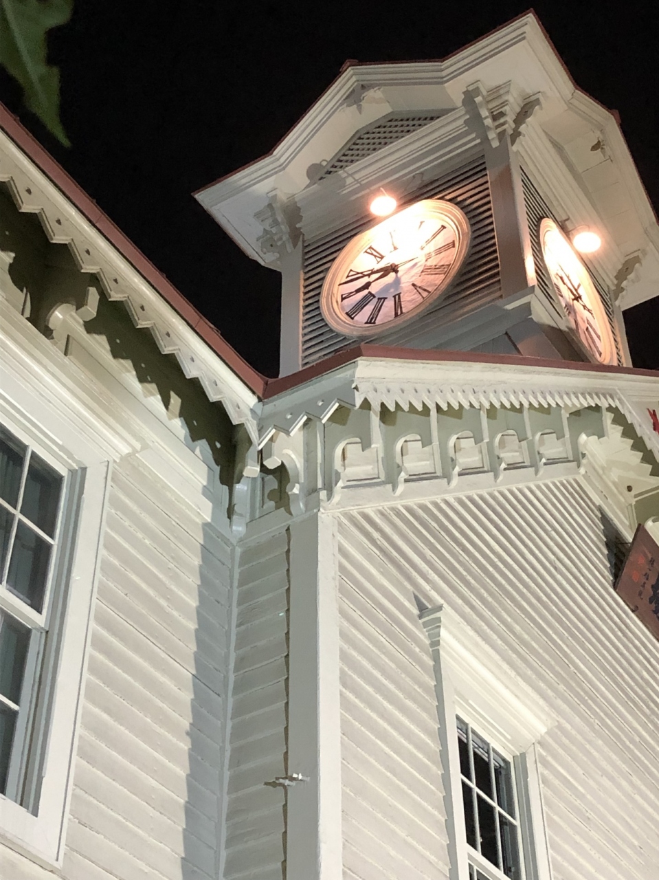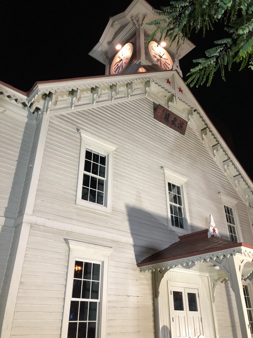 もちろん昼間の時計台を眺めたことは何度かあるのだけど、夜間照明に照らされ宵闇に浮かび上がる時計台はなかなか美しい