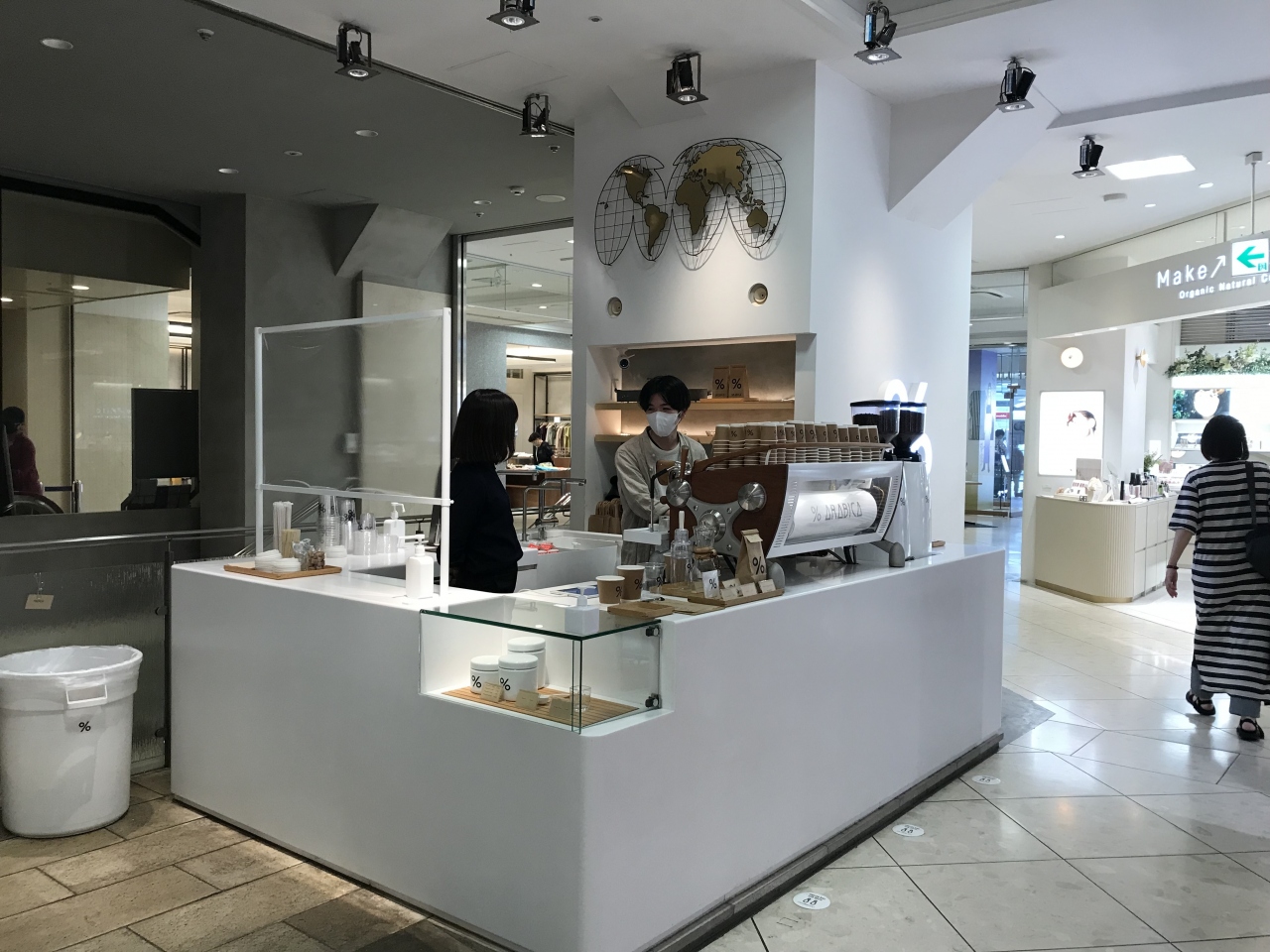 藤井大丸は、高島屋の隣にある百貨店です。2020年に創業150年を迎えた歴史ある百貨店です。すぐ近くに大丸百貨店がありますが、つながりはありません。小さめの百貨店ですが、若者をターゲットとしたファッションテナントがとても充実しています。5Fに喫茶コロナのたまごサンドを受け継いだマドラグの2号店があります。1Fにはコーヒーのアラビカのショップがあります。ともに人気があります。私はアラビカでアイスラテを購入して頂きました。