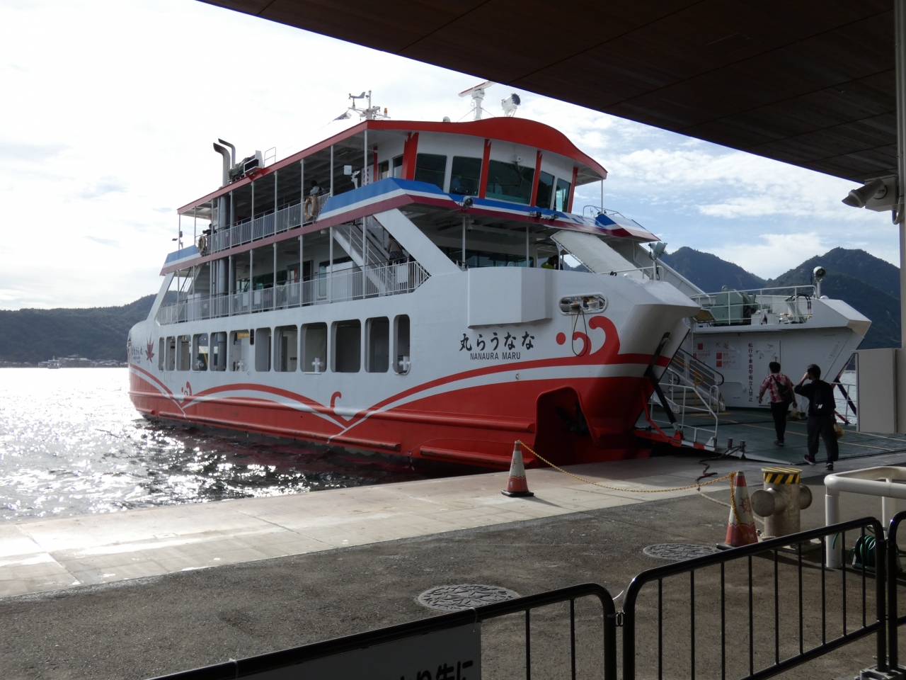 宮島に行くにはいろいろなルートがありますが、これがほとんど利用されると思います。自動車での駐車場も多いので助かります。短い船旅ですが、だんだん近づいていく景色に、心躍る高揚感に浸ることができ、旅のストーリーの序章となります。