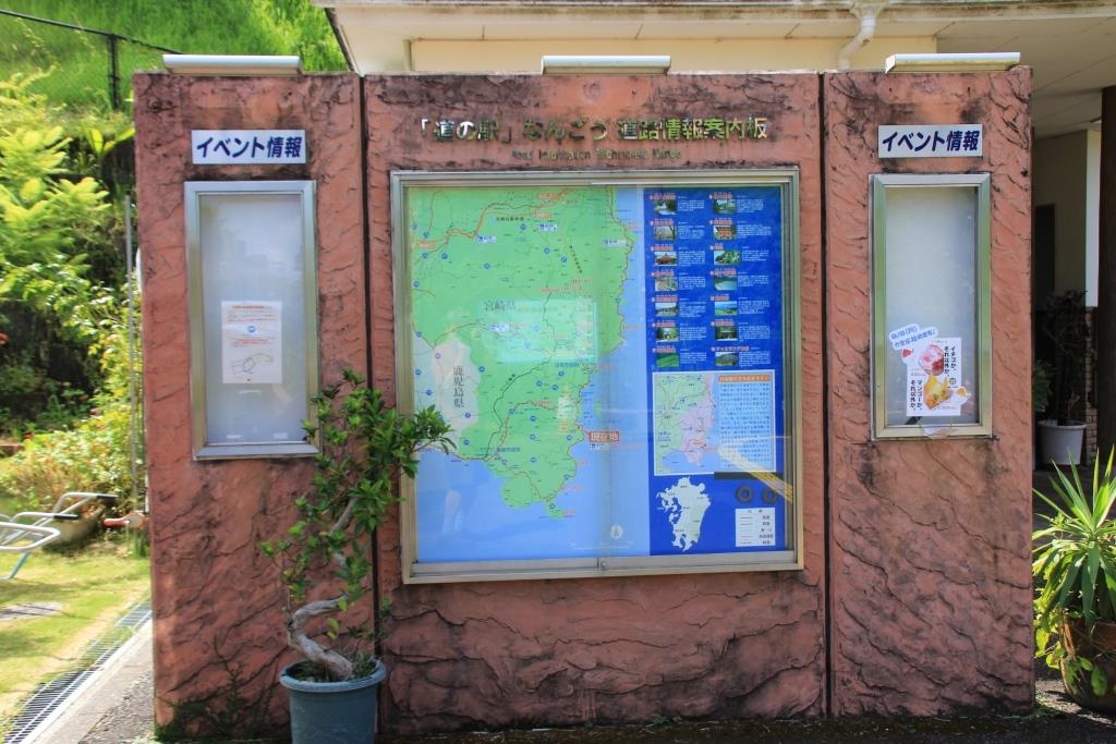 少した高台から海を見下ろすような位置にある道の駅で、道の駅周辺にはヤシの木やシュロの木が植えられ、南国ムード満点です。