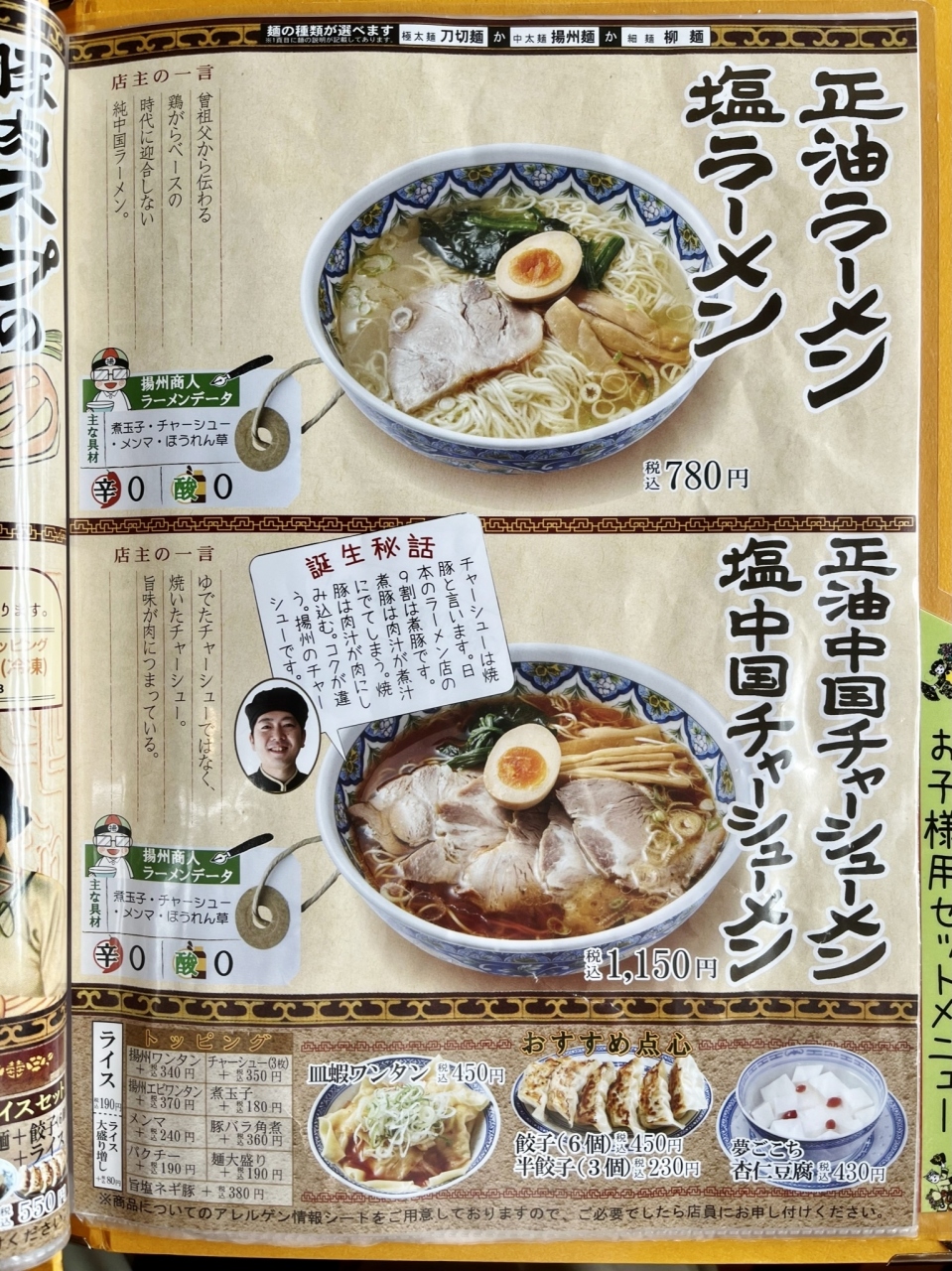 あえて日本風の正油ラーメン780円を3種類から選べる細麺でお願いしました