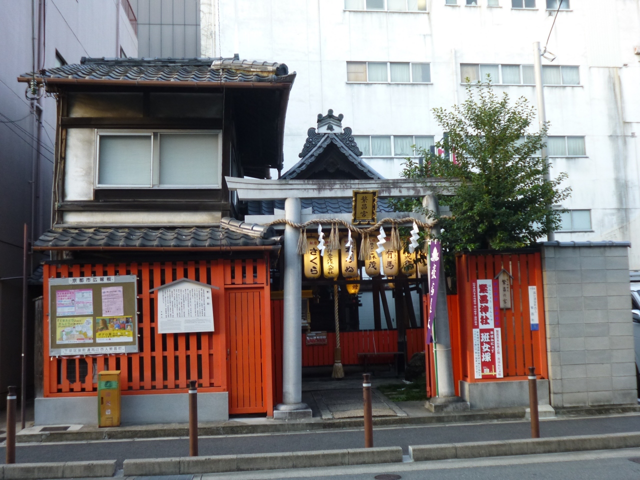四条駅から4分ほど、高辻通り沿い、旧京都市立成徳中学校の向かい側に、繁昌神社があります。神社自体はそれほど広くはありませんが、神社前に案内があり、徒歩一分のところに般若塚というこの神社の起源となる塚もあることが案内されています。平安京の頃、この辺りには藤原氏の邸宅が庭の中島に弁財天「班女の宮」を勧請したのが始まりとされているそうです。案内をゆっくり読みながら両方を回られるのも良いと思います。