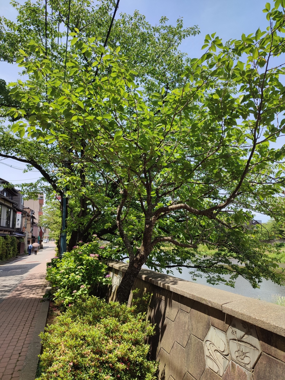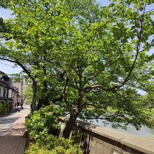 主計町茶屋街近くで生まれた作家の泉鏡花にちなんで名がついた浅野川沿いの遊歩道です。天神橋がスタート地点になっています。歩道沿いには歌碑や銅像などがあります。天気のいい日には気持ちよく散策できる場所でした。