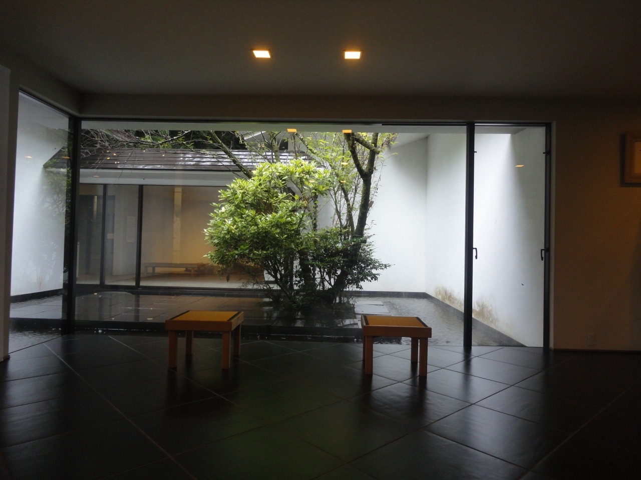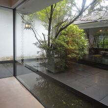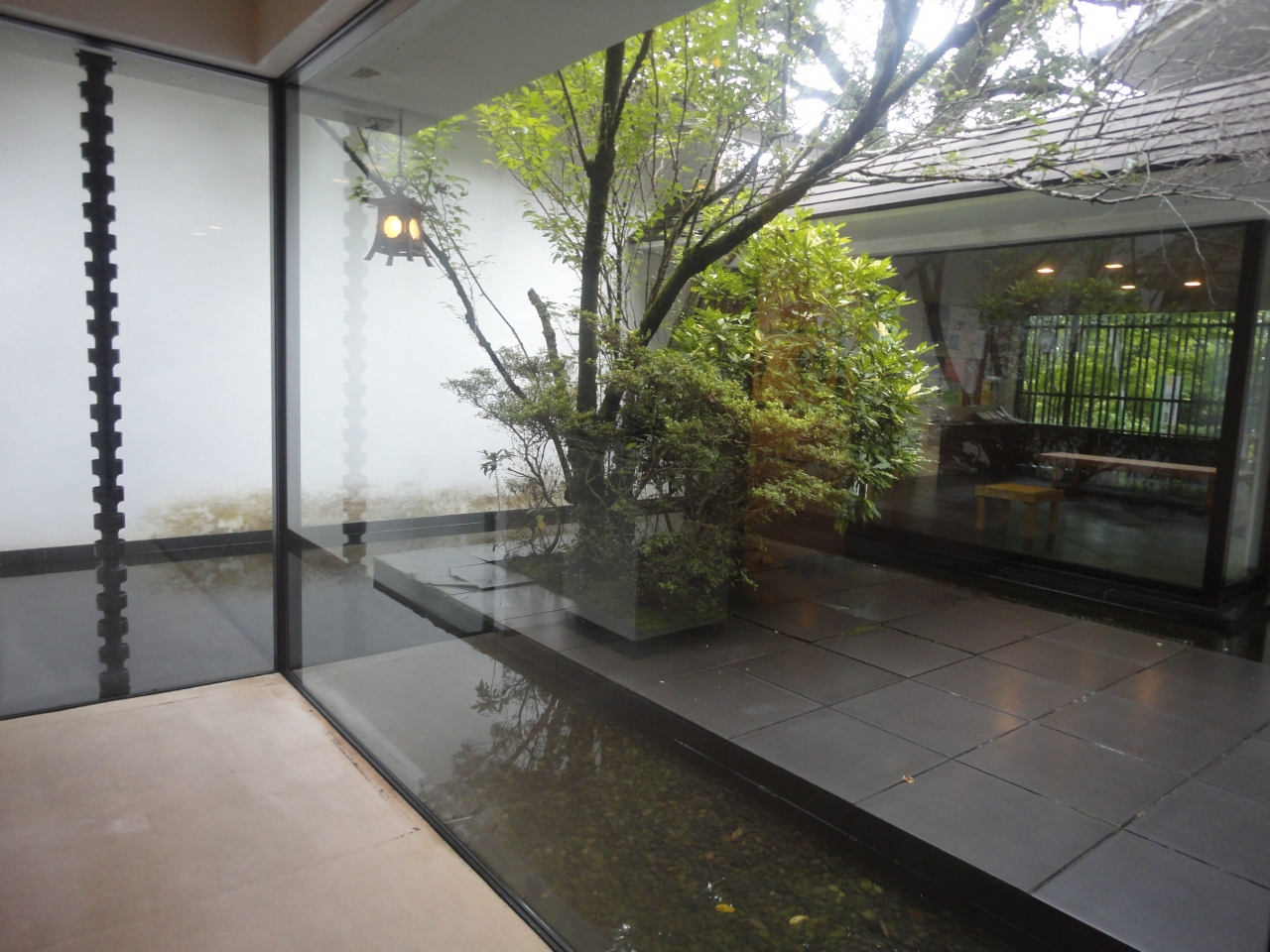 建物の中央に水をはった中庭があり、裏手の竹林も見えたりして、建物内部は素敵で落ち着いた雰囲気でした。