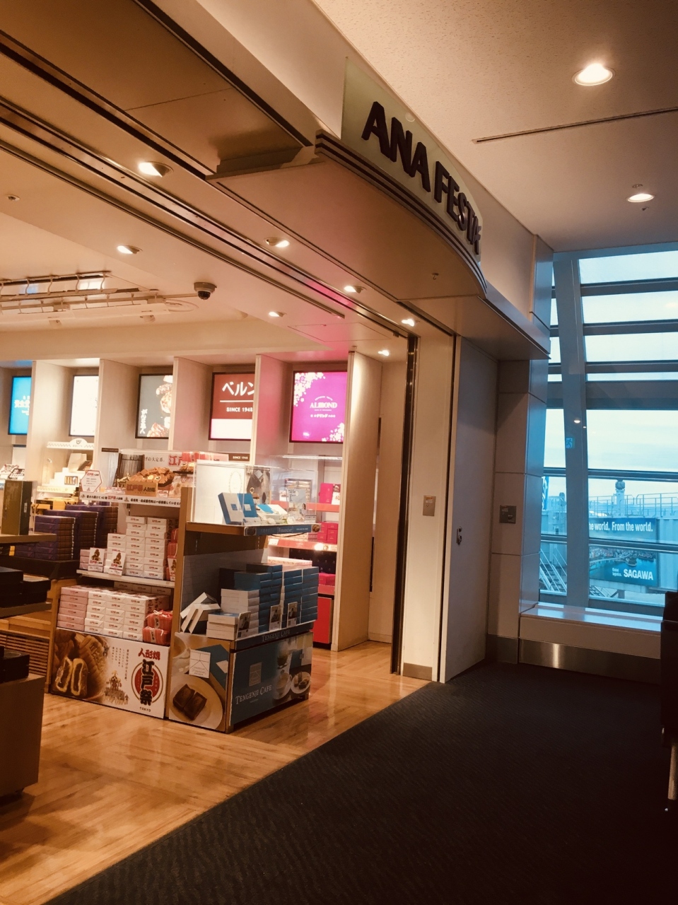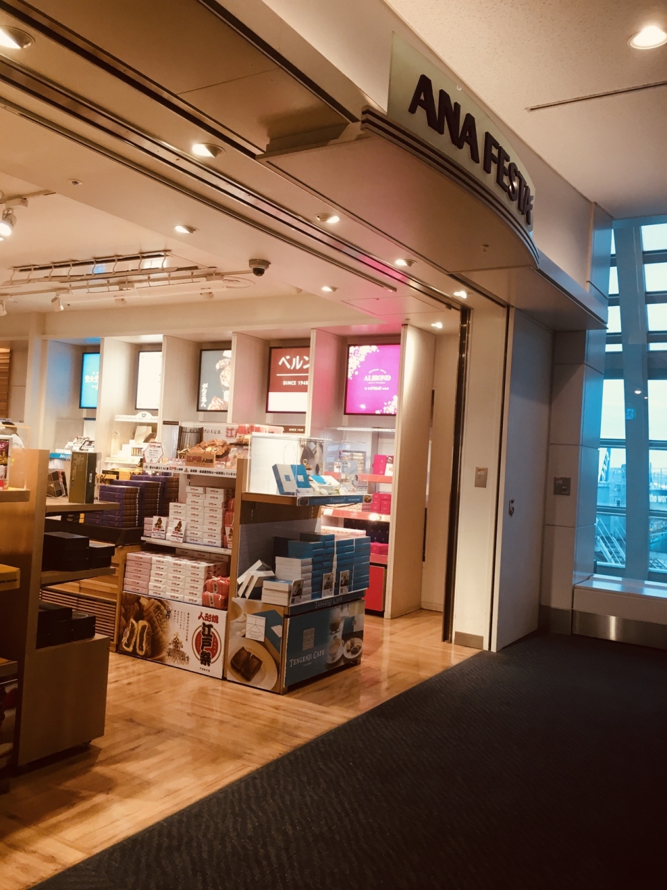 ゲートに入ったほぼ前にあったので買い物しました。早朝だったので弁当が豊富に置いてあり、崎陽軒の真空パックのシュウマイ弁当を購入。店内は箱型の土産のお菓子が多く置いてありました。ANAのロゴマークが入った鬼滅の刃のパッケージダック上たくさん置いてありました。