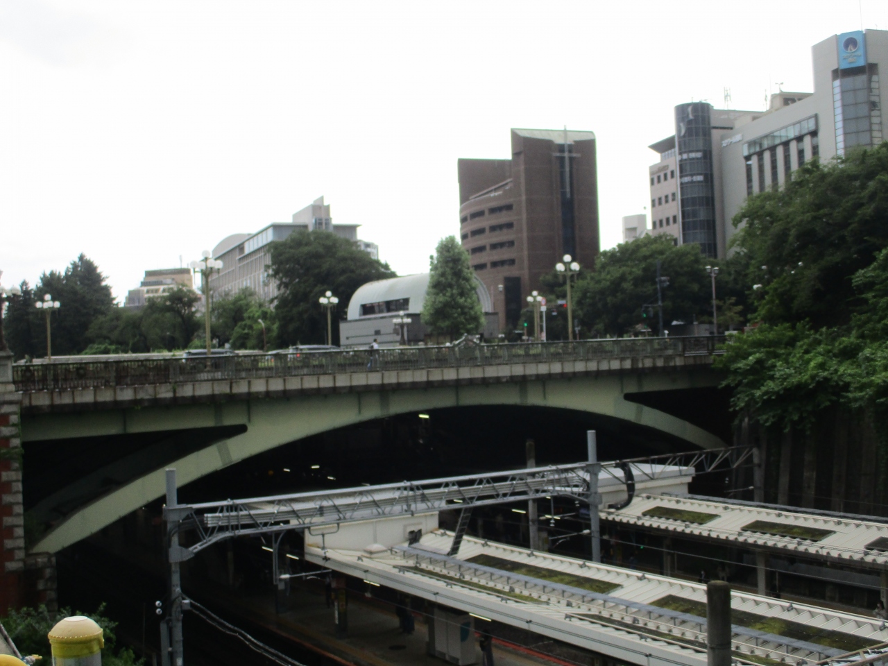 JR四ツ谷駅の麹町出口を出てすぐのところにある橋です。江戸城外堀の上に造られています。都内最古の陸橋と言われています。大正二年に架けられたこの橋は、19世紀のパリで流行したネオ・バロック様式を採り入れて重厚でお洒落な雰囲気です。現在の橋は平成に架け替えられたもので二代目です。柱に初代の時に刻まれた菊の御紋が残されています。