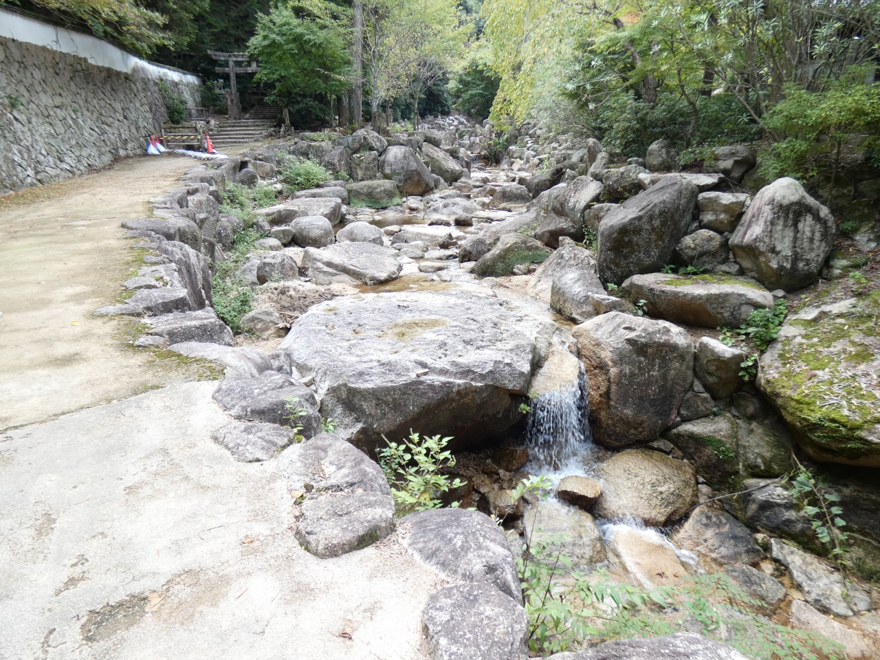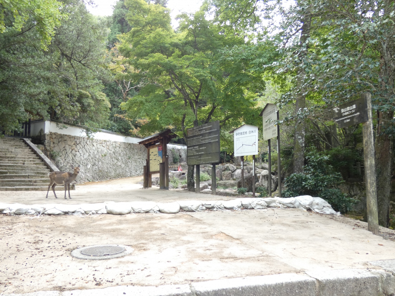 時間があるので体力強化も含めて弥山へは登山を選びました。3つのコースの中からネットの情報により、行きはこのコースを選択しました。時折振り返ってみると海が見えて楽しく、滝や川、神社などもあって1時間半程度の道のりを満喫しました。