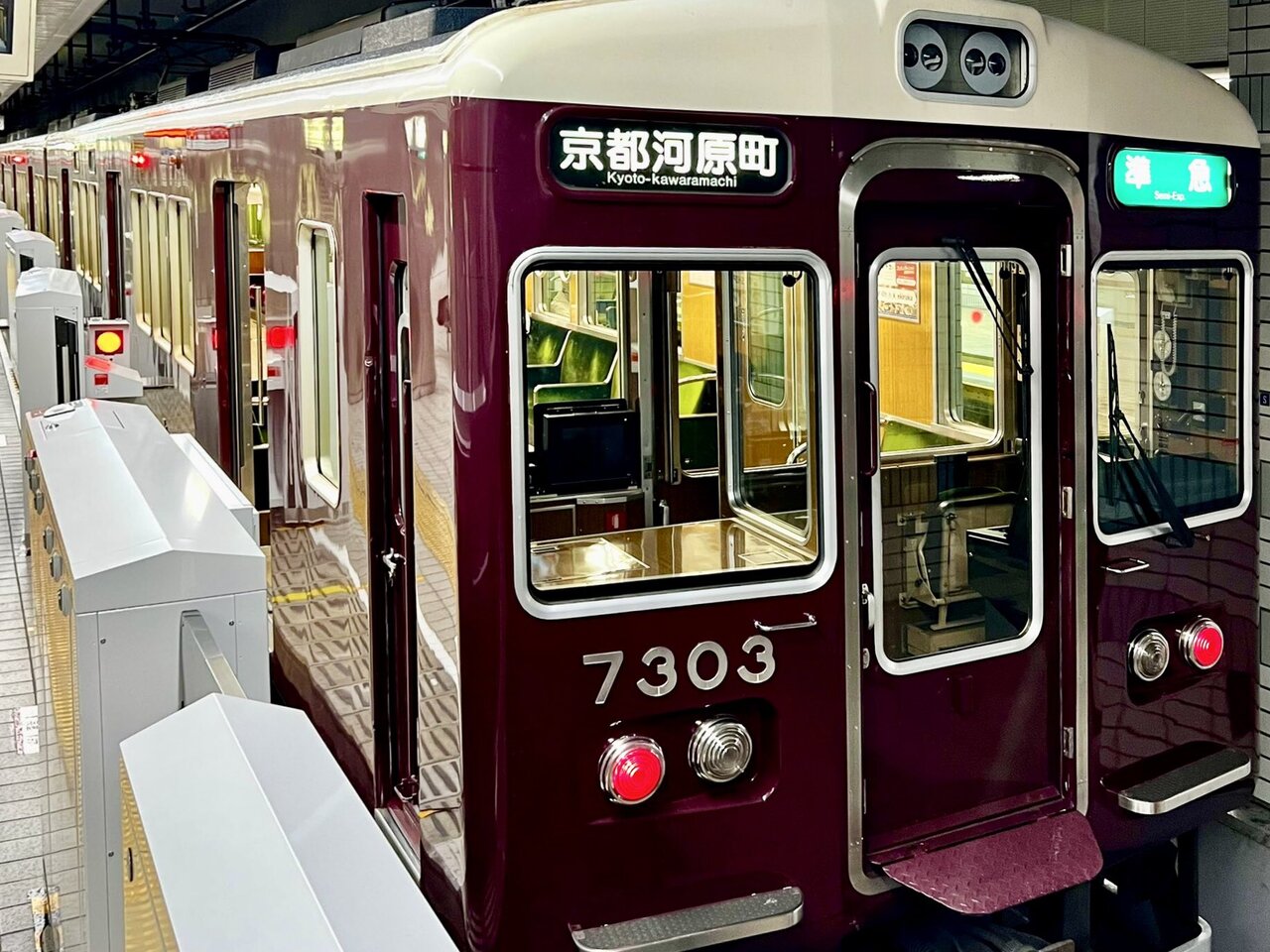 この気品ある、落ち着いた雰囲気と味のある色使いと佇まい、どう考えても、日本の在来線の中では、阪急電車が一番かなぁ!と、いつも思っています。準急に乗り、終点の京都河原町に到着しましました。いつか、大阪梅田~京都河原町間を走る和モダン列車「京とれいん雅洛」に乗りたいと思っています。