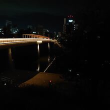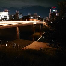 菅生川に架かる木製の橋です。10月中旬の平日の午後8時台に訪問しました。橋の上には、写真を撮っている観光客らしき人もいれば、スーツを着た通勤途上といった感じの人もいる、といった状況で、幅広い需要があるのだな、と感じました。