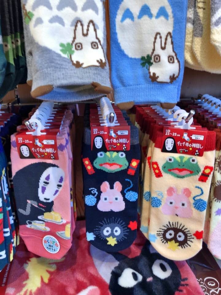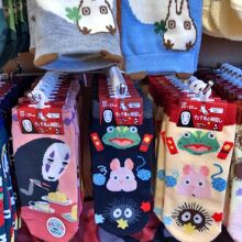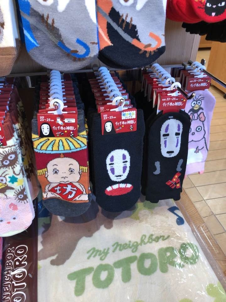 スペースは広いです。お店の一番奥には映像を流しているスペースがあります。他店では見たことがありません。オススメは靴下。結構ラインナップが多くて、子どもウケというより大人ウケする靴下が沢山ありました。カオナシはインパクト大です。