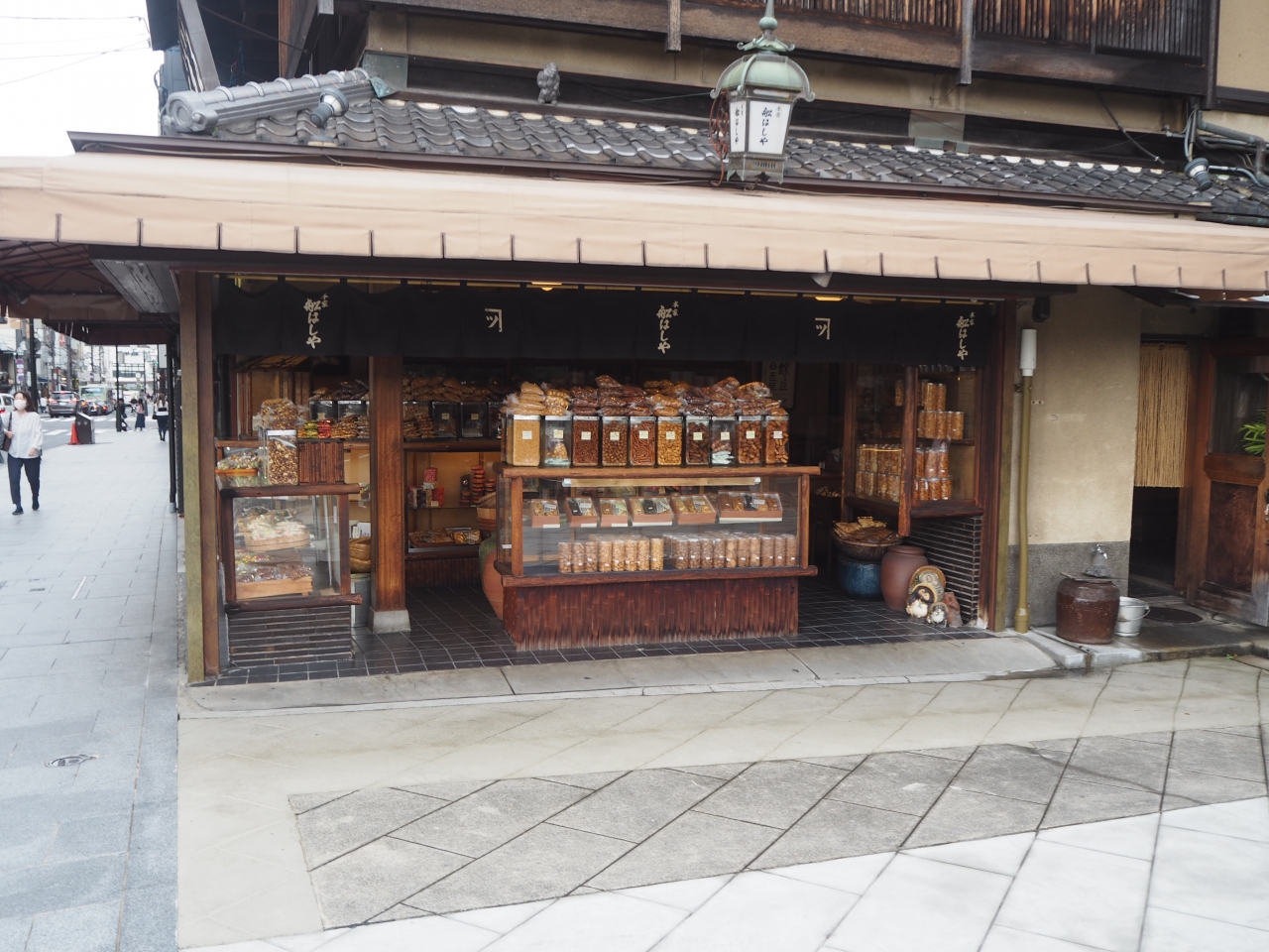 三条大橋の橋の西のたもとに船はしやはあります。船はしやは豆菓子、おかき、あられなどの店です。外観は歴史を感じる木造の2階建ての建物で、売られている商品と何となくあっています。売られているのは五色豆、あられ、おかきなどがありますが、五色豆がいろいろの種類が食べられていいです。このような菓子店が100年程の歴史があるというのは驚きです。