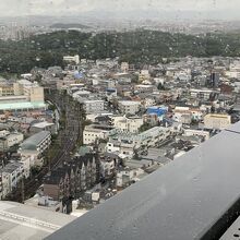 21階の高層階から、百舌鳥古墳群を眺めることができます。大きな前方後円墳の様子がわかります。