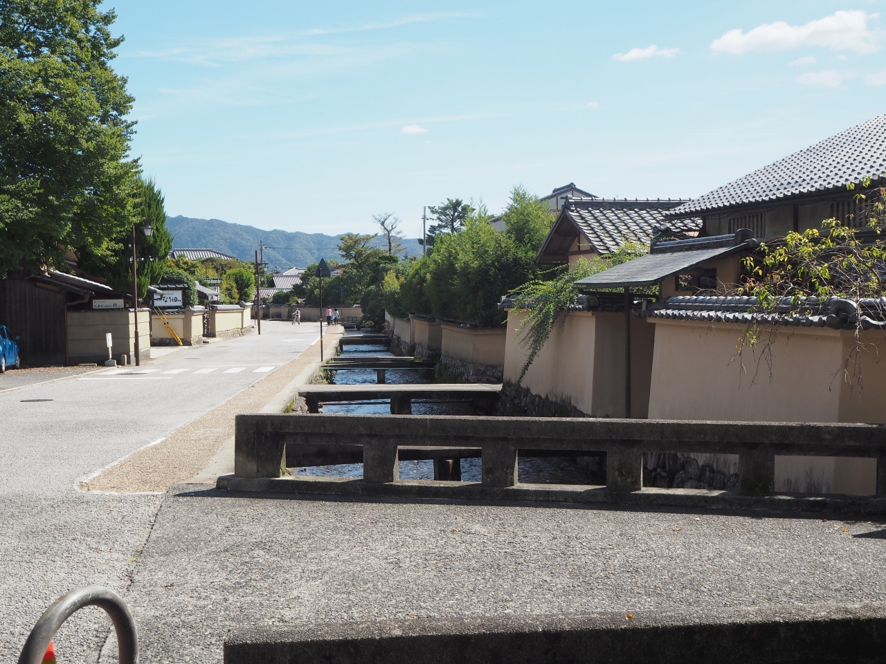 上賀茂神社の入り口の鳥居の前の道を進むと水路沿いに家、屋敷が並んでおり、風情がある景観が広がっています。ここは京都市の伝統的建造物保存地区に指定されている場所になります。西村家別邸は現在は一般公開されていないので、外観を見るだけです。水路沿いの家並みを見ながら歩いて行くのは気分が落ち着きます。
