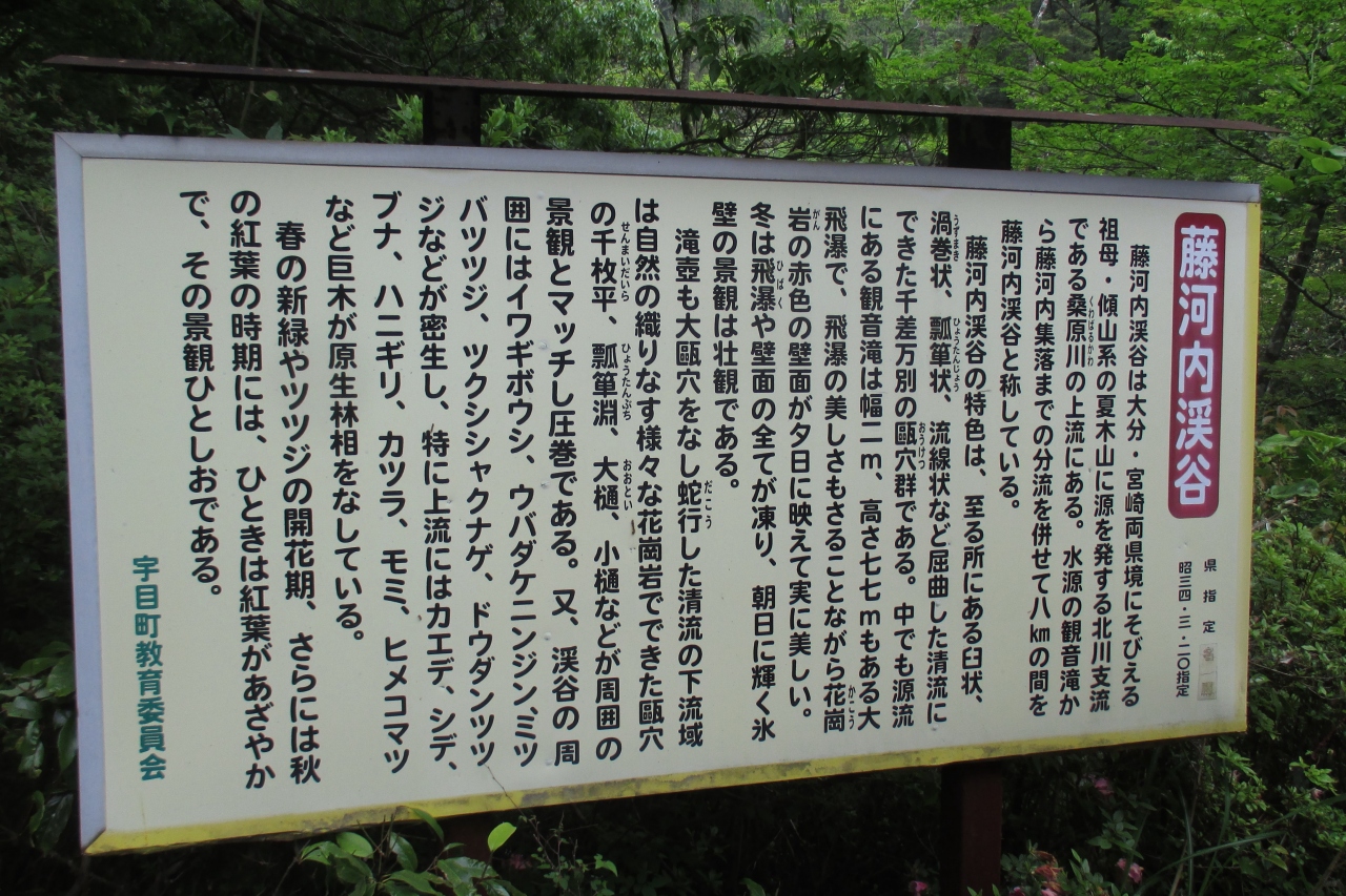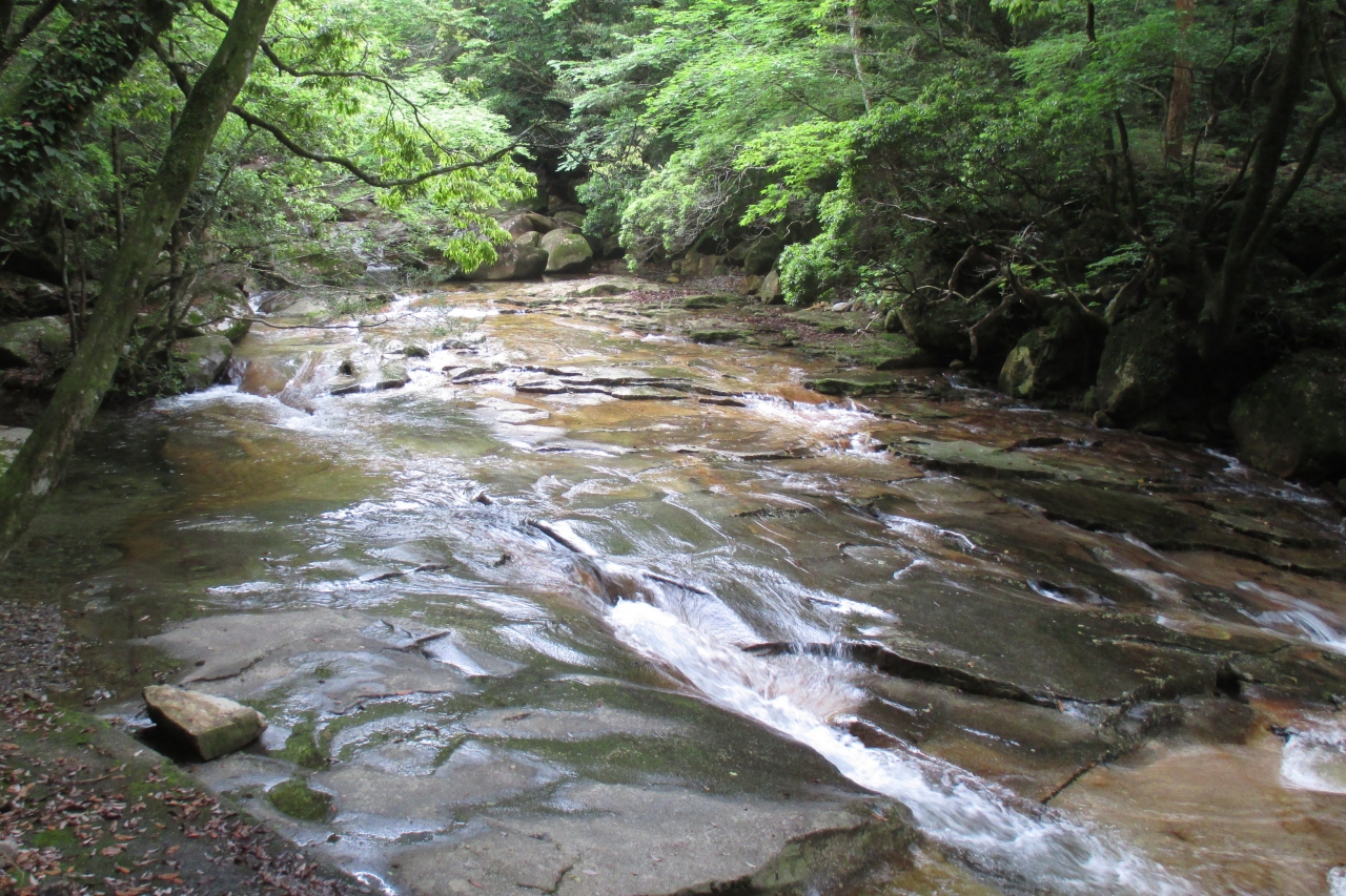 藤河内渓谷は5月に訪れました。といっても、千枚平というところだけで、渓谷全体では約8kmもあるそうなので、ほんの一部だけです。花崗岩の1枚岩とそこを流れる清流が見どころだそうですが、千枚平ではその見どころの1つだと実感できました。少し下流では1枚岩はなくなり普通の渓谷の景色でした。この藤河内渓谷へ国道を外れてから進んだ道では、同じ方向に進む車も、対向してくる車も、1台も出会いませんでした。ここは夏期には人がやって来るシーズン性の高いところなのかなと思いました。