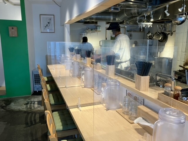 藤が丘駅から5分程歩いたもえぎ野公園前交差点の一角にあるラーメン店です。以前この辺りを通った時にはなかったので、最近開店してようです。店内はカウンター席6席とテーブル席が2卓とこじんまりとしたお店です。平日の11:15に行くと先客が2組。