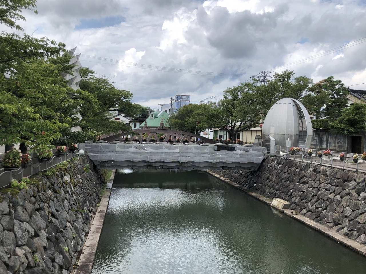 まんがロードから続く中の橋を中心としたエリアです。湊川沿いに散策路が整備されています。中の橋の隣には、「虹の橋」というカラクリ時計があり、見所の一つになっています。また、その隣に架かる「復興橋」も虹の橋に比べると目立ちませんが、中の橋を原型通り復元したという趣のある橋でした。川沿いに植えられているのは桜で、とりわけその時期は綺麗だと思います。