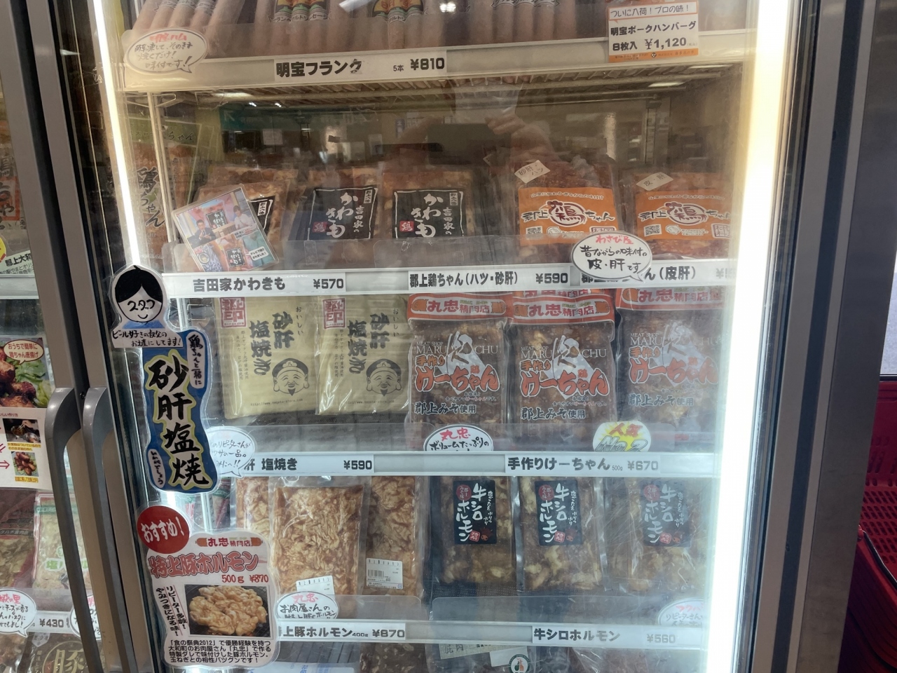 岐阜県の有名なソウルフード鶏ちゃんの冷凍パックが見たことないくらいいっぱいありました。どれを選んでいいか迷いますが、いろいろ試してみると面白いです。どれも外れが無いくらい美味しいです。郡上に来たら必ず買って帰ります。