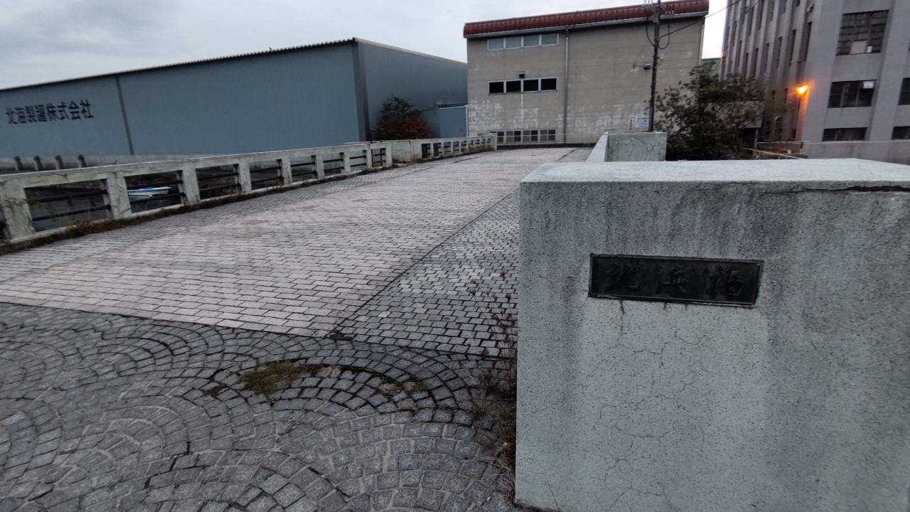港湾側には建屋があって通り抜けができない構造、こうなると通行用の橋というよりは運河を眺める展望デッキみたいな感じでした。