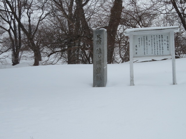 一面雪景色の桂ケ岡公園の上の方にあります。2月ということで、道なき道を進み、「史蹟 桂ケ岡砦跡」と書かれた石碑と案内板に到着しました。アイヌ民族ゆかりの場所で、見晴らしのいい場所になっていることがわかりました。隣りの郷土博物館には、迫力があるヒグマの剥製がありますので、一緒に見学するといいですよ。