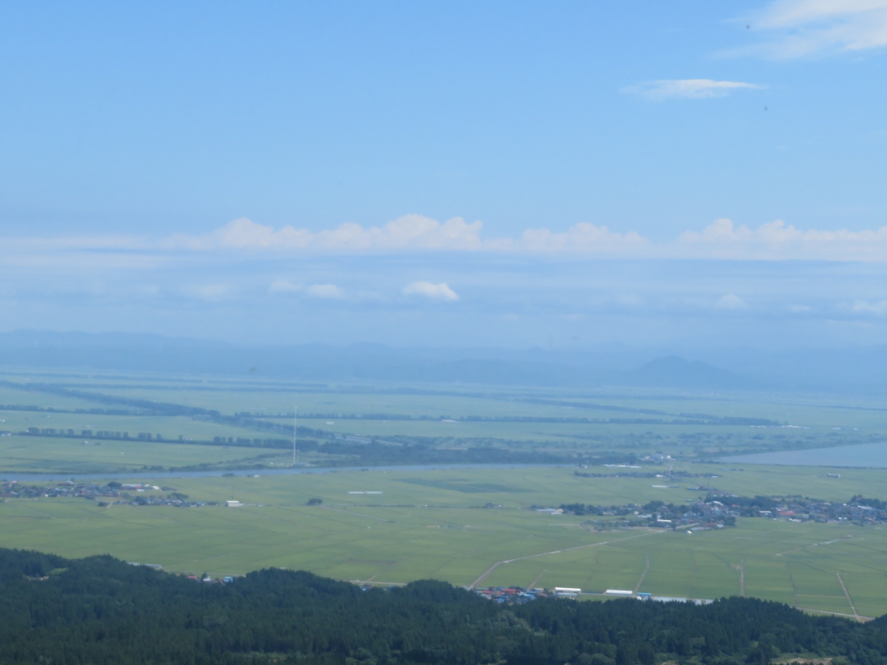 南側の日本海、西側のかつての噴火口跡(もう緑に覆われて、言われないと分からないです)、東側の八郎潟がまとめて見渡せます。