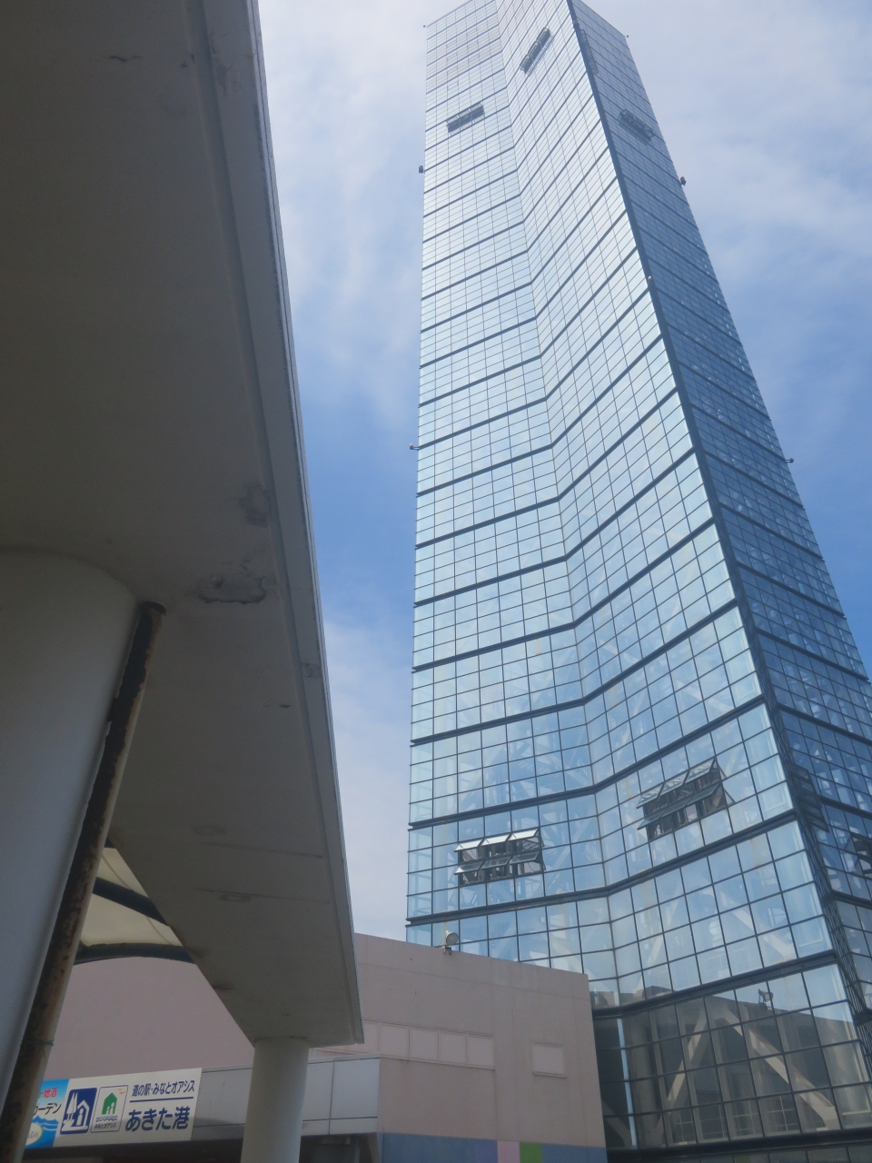 秋田港エリアにある高層のビルで、高さ143mのガラス張りです。
