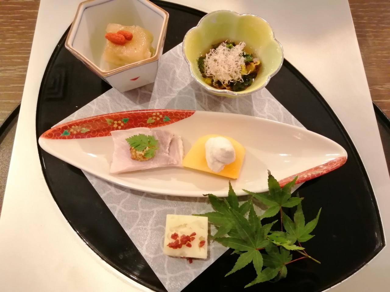 キラリトギンザの6階にあり、金沢の工芸品の展示スペースの奥にあります。食事は会席コースのみで、一番安い¥6500のコースにしました。