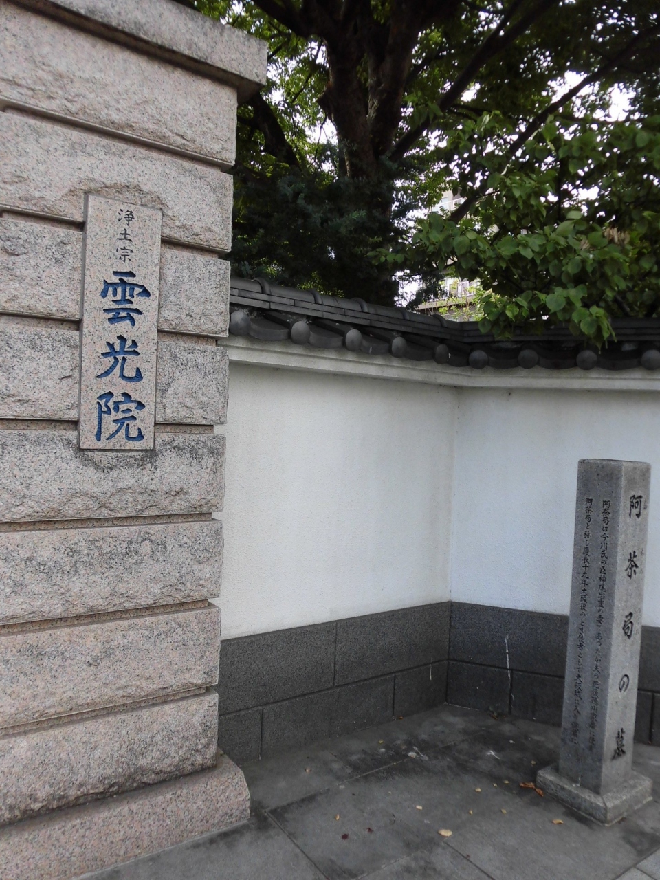 江東区の三好近辺で、お寺巡りをしていた時に立ち寄った寺院です。門柱の脇に、阿茶の局墓と石柱が立てられていて、徳川家にも所縁がある浄土宗のお寺のようです。境内はそれほど広くはありませんが、樹木も茂っているので、落ち着いた雰囲気のお寺でした。