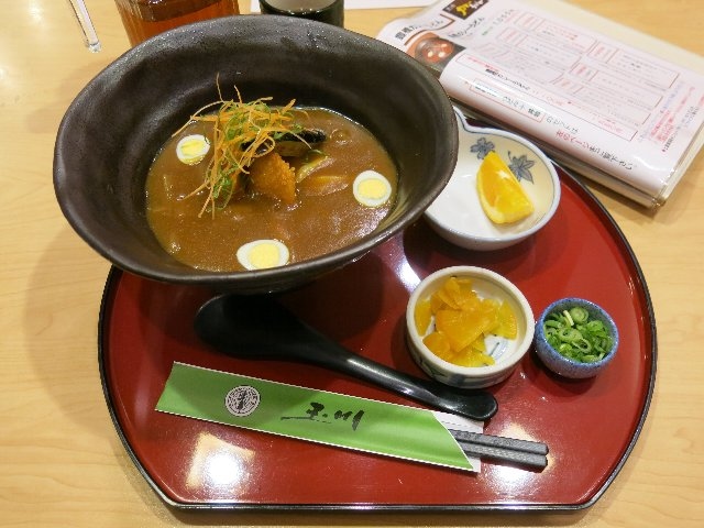 必須のウズラ卵のほか、なす・かぼちゃの天ぷら、チキンカツが添えられています。どれも美味しく満足出来ました。
