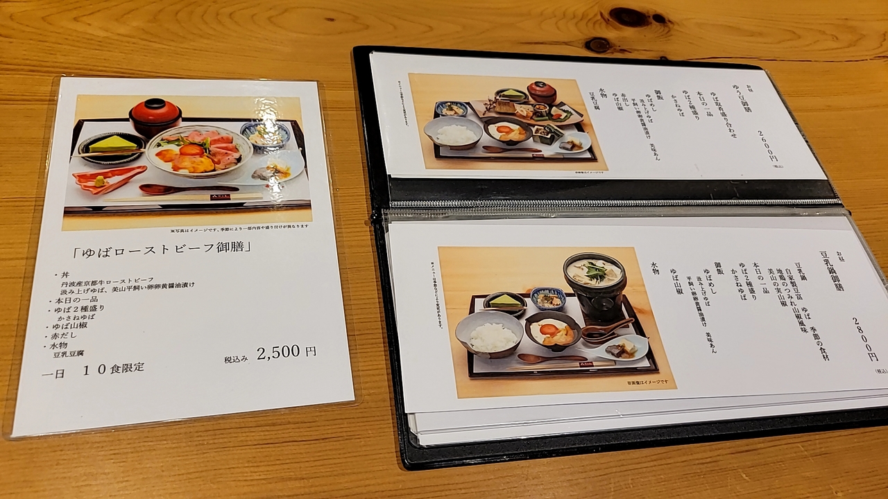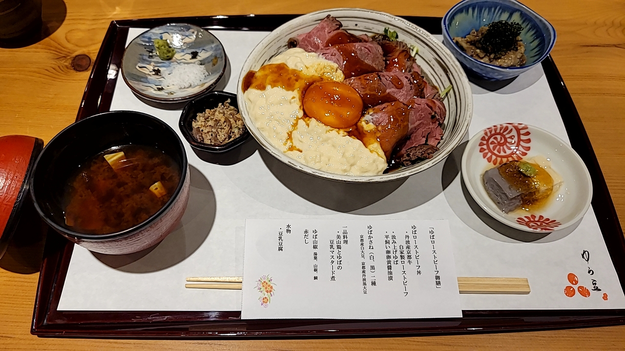せっかく京都に来たのだからゆば料理をいただきたいとお伺いしました。、当日は予約で満席のようで、前もって予約していくのが確実です。ゆばもおいしかったですが平飼いの卵やローストビーフも柔らかくおいしかったです。量も十分で、店内もきれいで、お店の方も丁寧で気持ちよくお食事ができました。