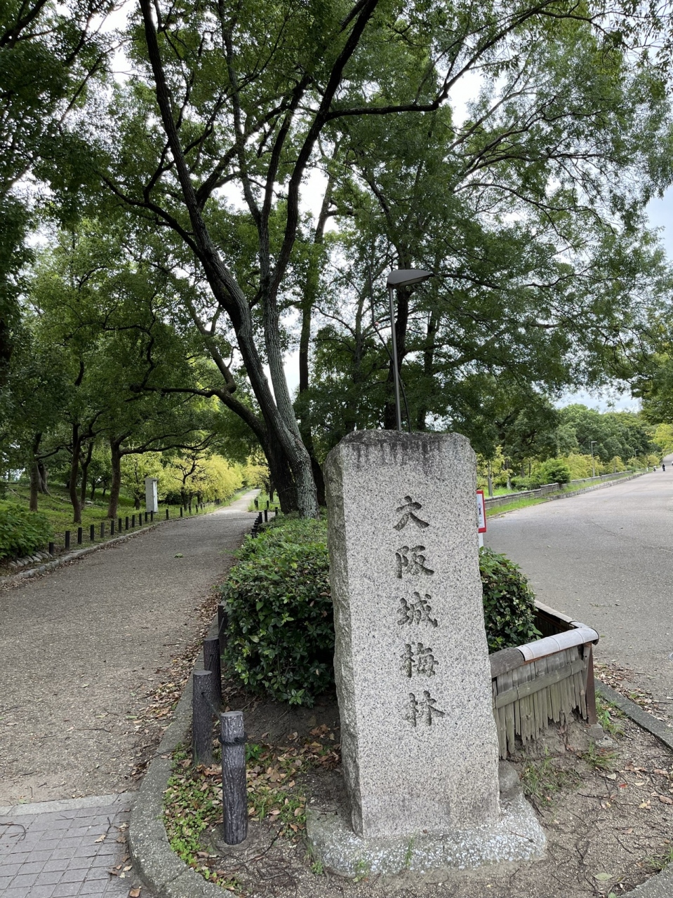 大阪城の天守閣に向かう少し前に、「大阪城 梅林」と書かれた小さな石碑があります。ここから広大な梅林が広がります。残念ながら、9月ということで、梅は咲いてませんでしたが、大阪城は太っ腹で、このエリアも入場無料です。
