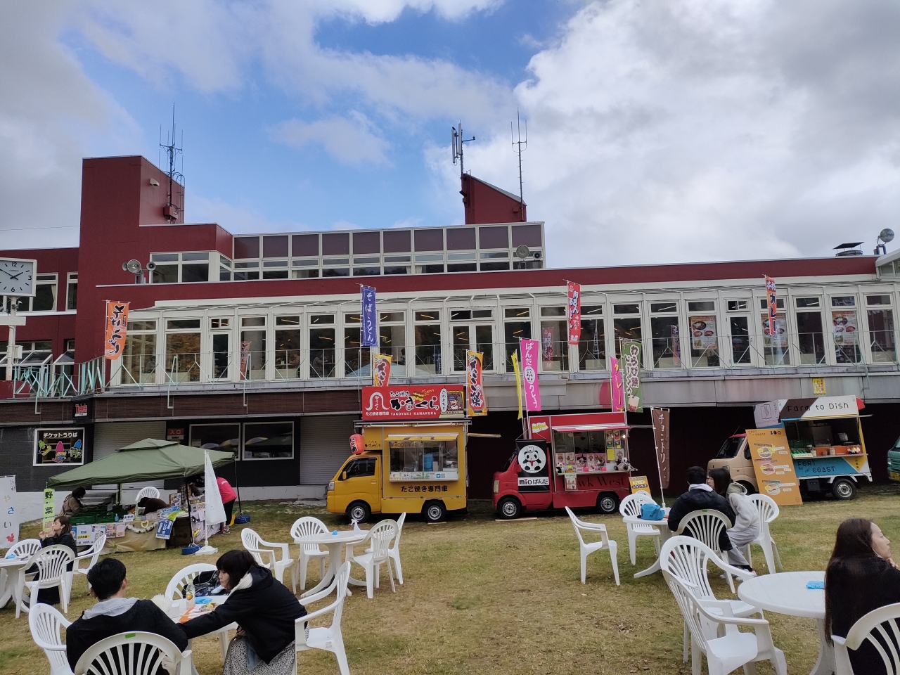 紅葉期にゴンドラ(”スカイキャビン”)が運行され、車中から紅葉の景色が楽しめるほか、麓の乗り場付近では”秋祭り”と称して、ちょっとした屋台や野菜の販売など、ミニイベントが行われていました。