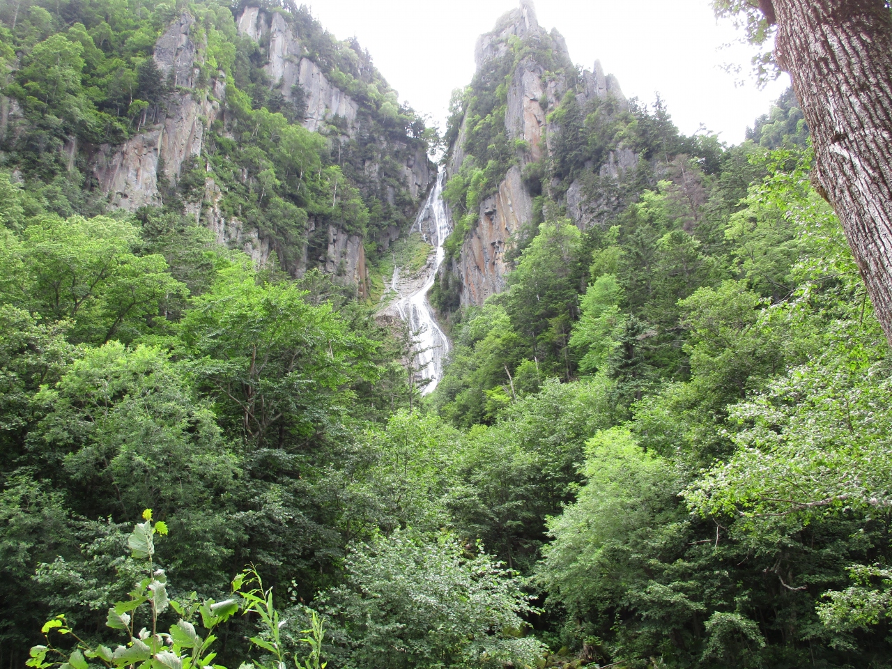 流星の滝の周辺はいい感じの冷気が気持ち良かったのですが、滝の前に木の葉っぱが覆っていて、真正面から全体を見れなかったです。このため、写真を撮影すると葉っぱだらけになりました。もう少し切って、整備していただけたらと思いました。