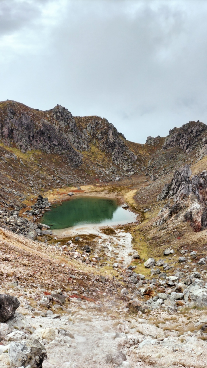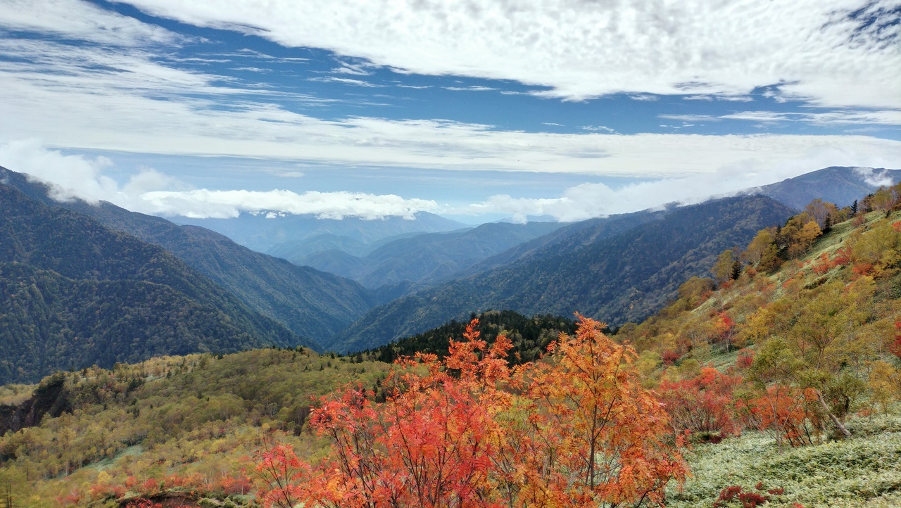 赤いゴツゴツした活火山でいつも噴気がモクモク上っており危険なイメージ。あまり気が進まなかった百名山の一つでしたが他の山を訳あってこちらの山に変更して登ったところ森林限界までは素晴らしいトップクラスと言っても過言ではないカラフルな紅葉ぶりでびっくりでした!噴気ガスが音を立てて噴き上がる一方で登った道を振り返ると、この山にしかない様な色とりどりの紅葉が全面に広がっており圧倒されながらずっと楽しく登れました。次回来るとしてもまた秋です。