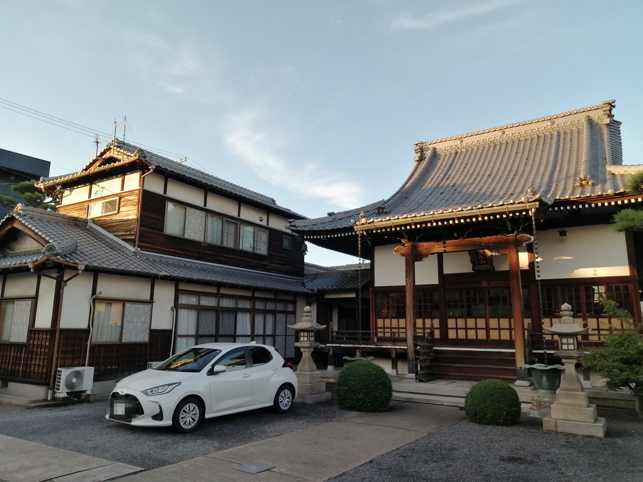 山門は閉じられていましたが、すく横の駐車場から境内に入れました。よく手入れの行き届いたゆっきりとしたお寺です。本堂は歴史を感じさせるたたずまいですが、その横に建っているお住いがこれまたシブい。本堂と並んでいてもなんの違和感もない数寄屋造り風のお宅。住職のお人柄がわかるような気がします。