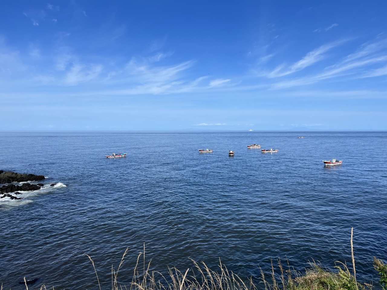根室半島の先端にある日本本土最東端です。この日は天気も良く、北方領土の歯舞諸島が間近に見えて、こんなに近いものかと驚かされます。午前中に訪れましたが、ちょうど昆布漁の漁船がたくさん出ていて活気がありました。