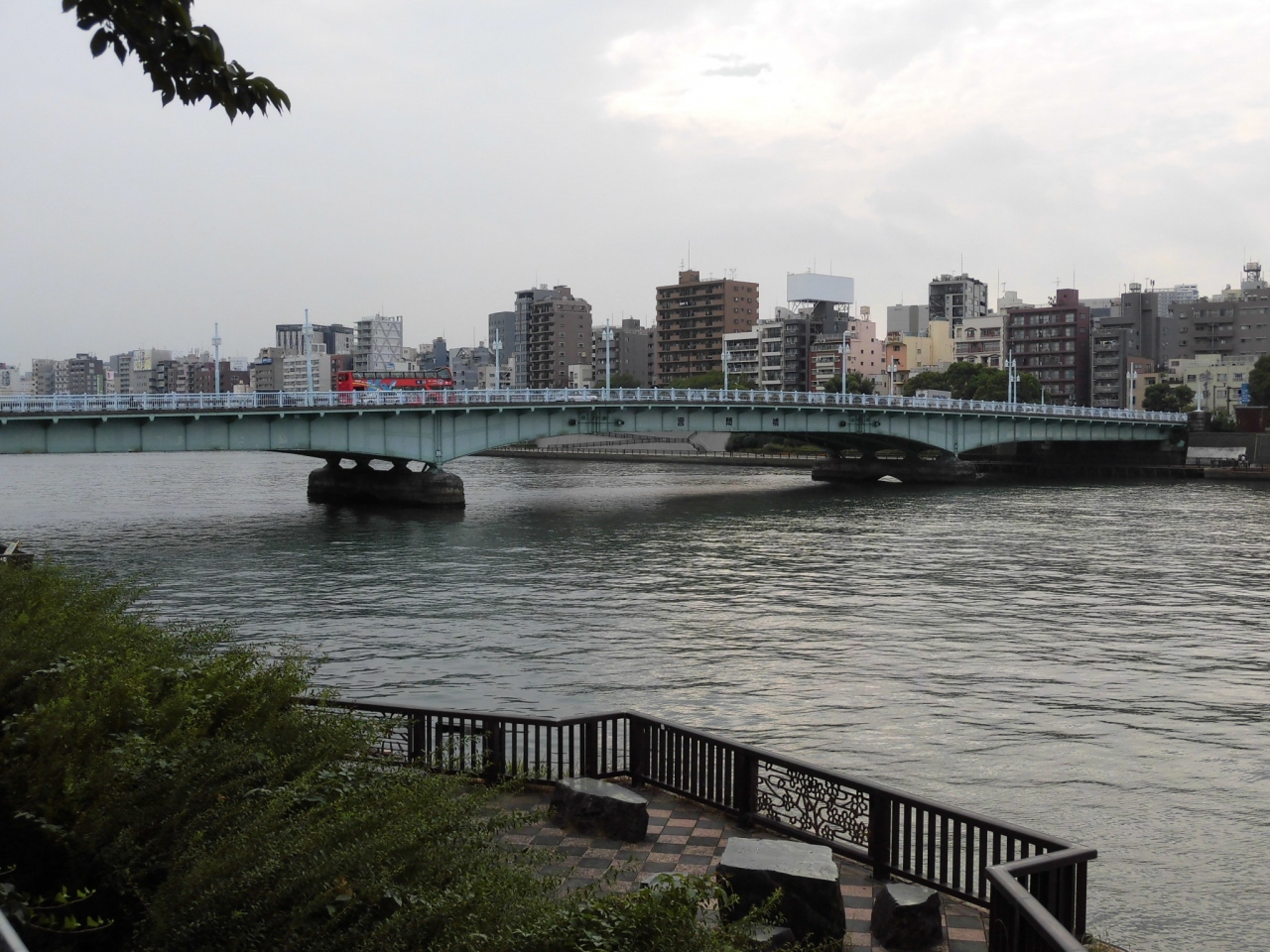 墨田区の向島から、浅草方面に向かう時に渡りました。昔からの隅田川に架かる重要な橋として、幅も広く多くの車や人が行き交っていました。橋の上の歩道は広くて安全なのですが、橋から下がるときに狭くなっていて注意が必要だと思いました。