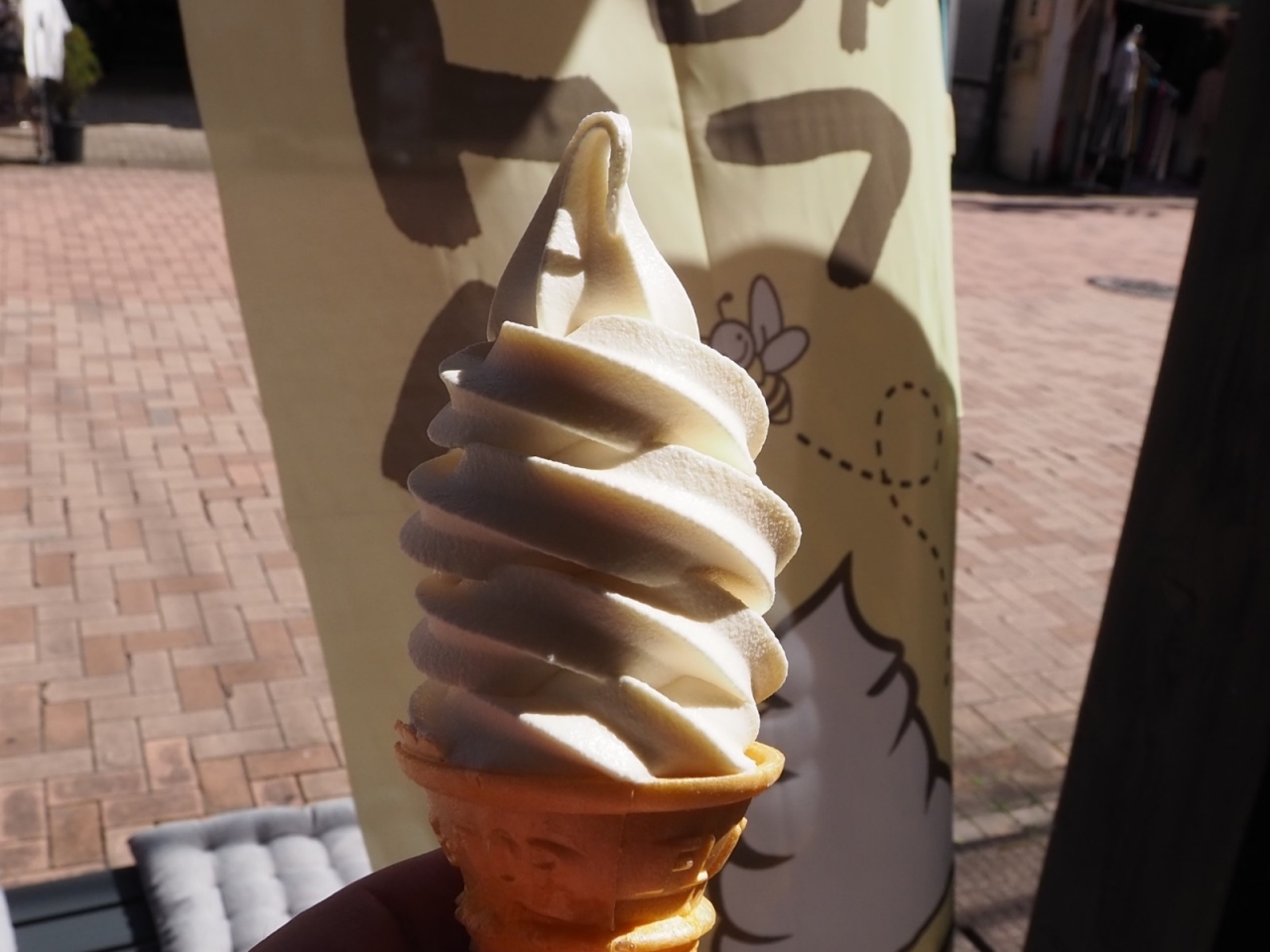 9月末とはいえ暑かったこの日、休憩を兼ねて店頭の椅子に座ってはちみつソフトで元気をチャージ。