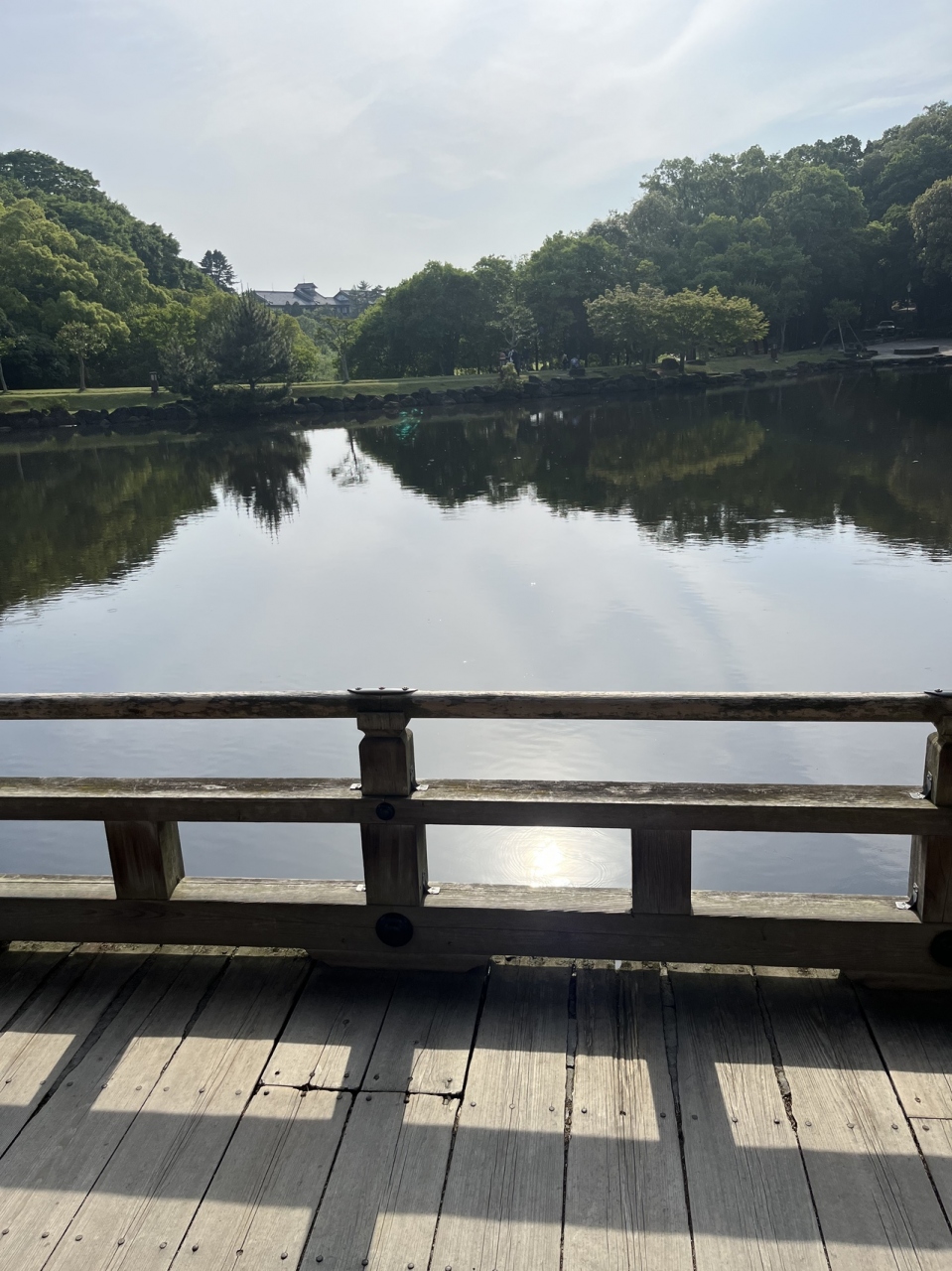 「鷺池」に架かる橋「蓬莱橋」を歩いていたら