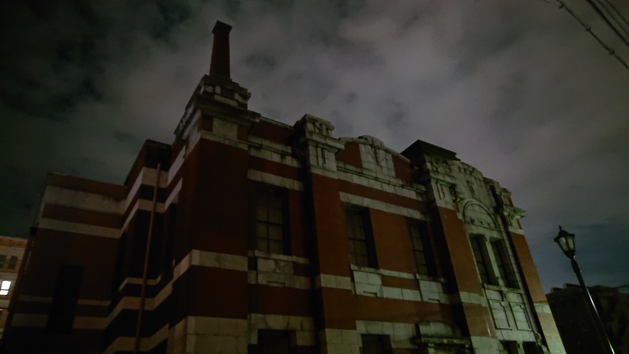 10月上旬の平日の午後時台に訪問しました。こちらの建物は、市街地に立地はしています。しかし、表通りから少し奥まっているまめ、周囲に明かりが少なかったです。したがって、何とか写真を撮影することはできたものの、見易い状況とは言えませんでした。