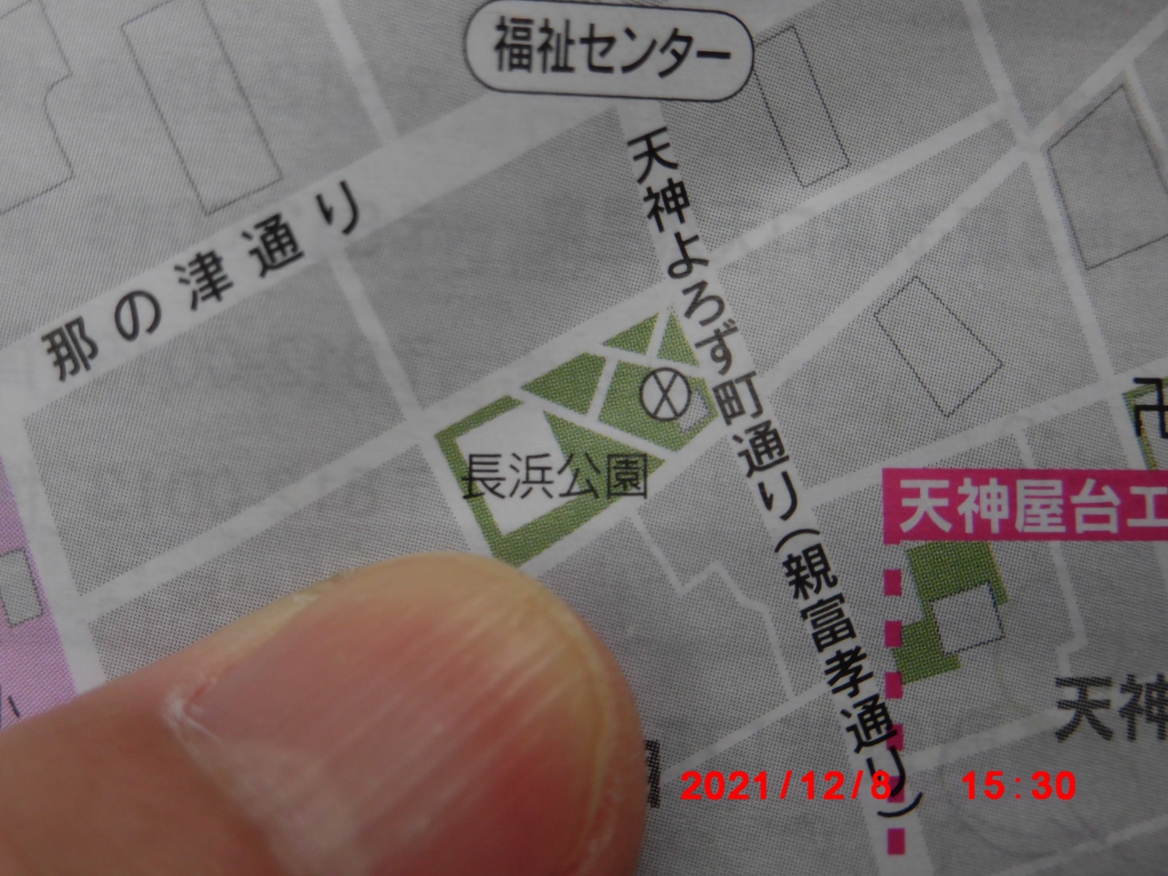 福岡市博多区観光で立ち寄りました。長浜公園は、親不孝通り(現地の地図では「親富孝通り」)の北寄りにあった普通の公園で、公園を囲んでいる4つの道路の内、親不孝通り以外の3つの道路は舞鶴768号線、舞鶴769号線、舞鶴771号線と言う無機質な名前の道路でした。