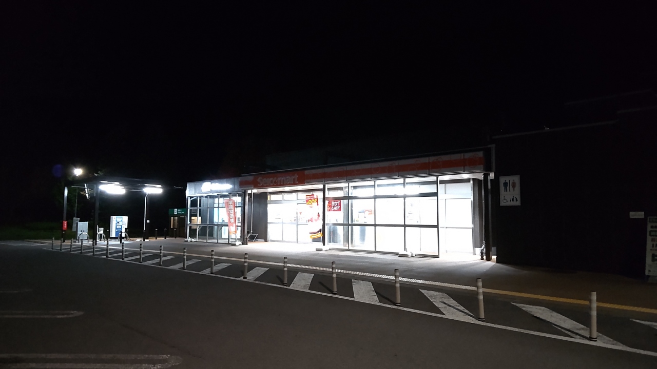 施設はトイレ、コンビニ(セイコーマート)、自販機、EV車急速充電スポット、喫煙所、緑地の構成でパーキングエリアって感じでした。