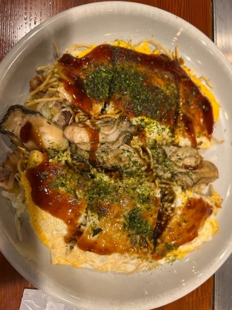 1泊の宮島旅行で、せっかくなので夕食を宮島で食べてフェリーで帰ることにしました。広島といえばお好み焼きなので、賑やかな表参道商店街に何軒かある店舗に入ることにして行きました。焼き牡蠣を食べていなかったこともあり、牡蠣入りのメニューを注文したところ、プリプリの牡蠣が入っていて牡蠣が好きでよく買う私からしても、とてもおいしくて大変満足しました。