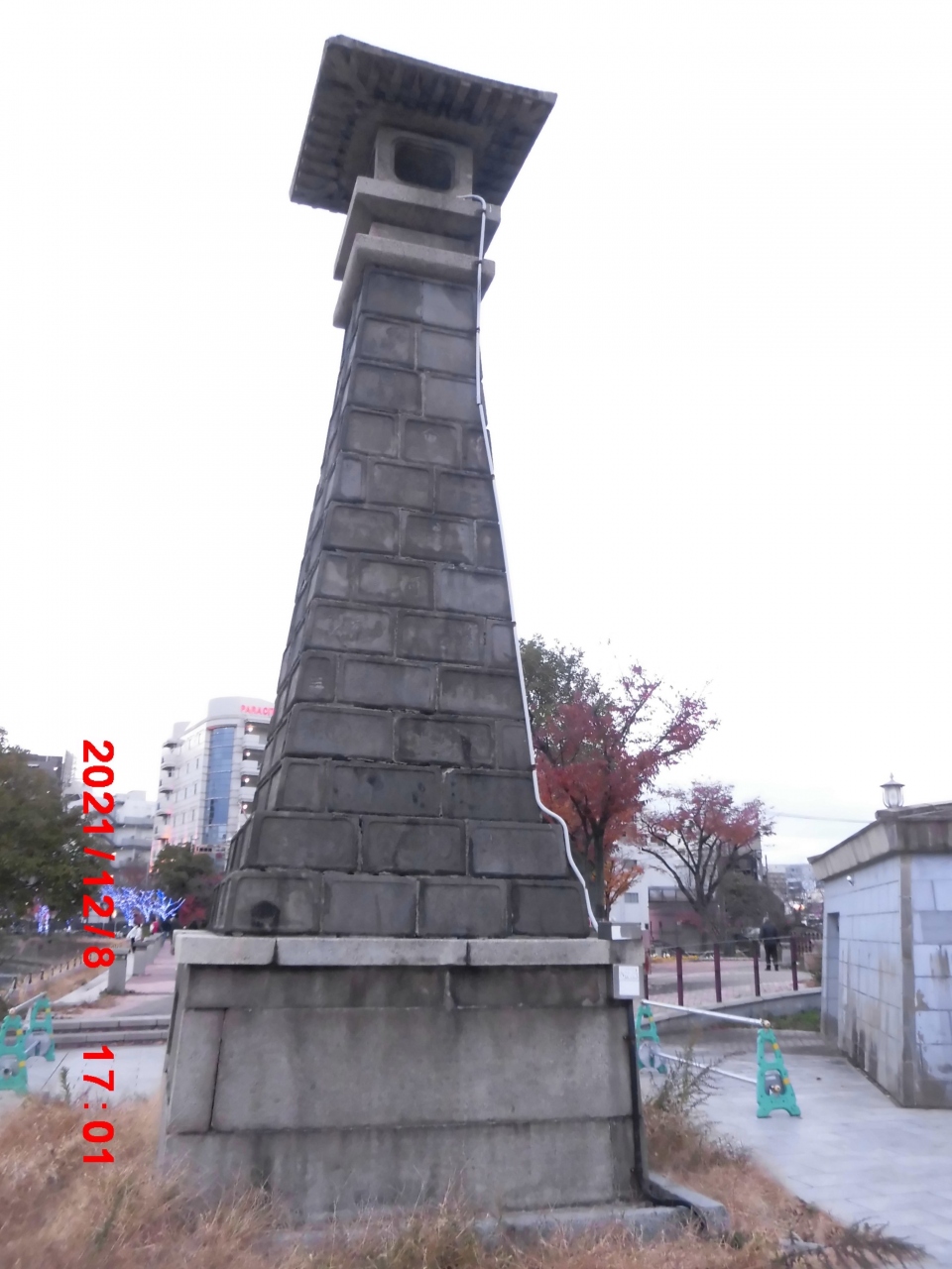 福岡市博多区観光で立ち寄りました。博多町家寄進高灯篭は、中洲の南端にある清流公園の南端にある立派な趣のある灯篭です。説明板には、明治32年、博多誓文晴(払)の創始者漬物屋 八尋利兵衛(やひろりへい)が住吉から中洲付近まで開発し、遊園地「向島」を開園した開園記念に建設された灯籠と書かれてました。