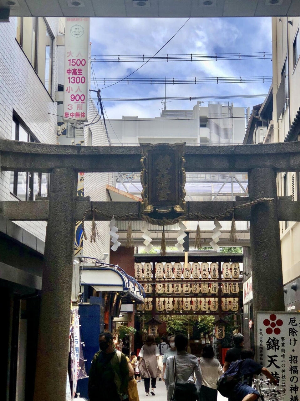 錦市場の先端と新京極通りの交差した所に、錦天満宮はあります。錦市場に買い物に来たら必ず寄って参拝して帰ります。天満宮という名の通り、学業はもちろんのこと、商売繁盛にもご利益があるようです。京の名水のひとつだと言うご神水の、錦の水もあります。梅の実の形をした絵馬が定番のようです。