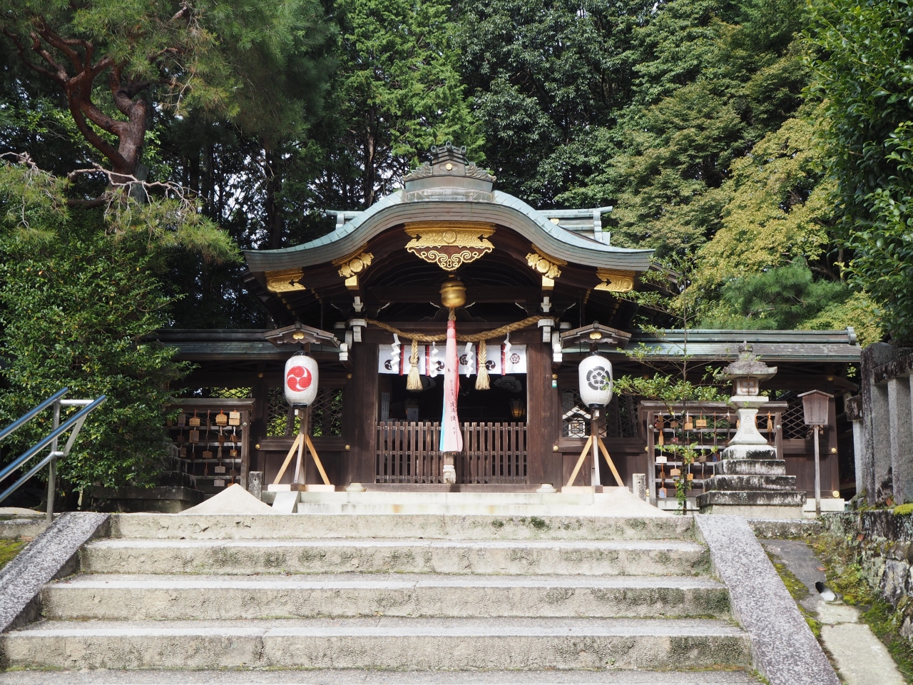 一乗寺駅から東へと歩いて10分ほど、詩仙堂から坂道を上ってすぐの場所に八大神社はあります。宮本武蔵が吉岡一門との決闘のさいに、八大神社でお祈りをしてから向かったという言い伝えにあり、ここが宮本武蔵ゆかりの神社になっています。境内には宮本武蔵の旗が立てられていた李、社殿の斜め前には宮本武蔵の像があります。