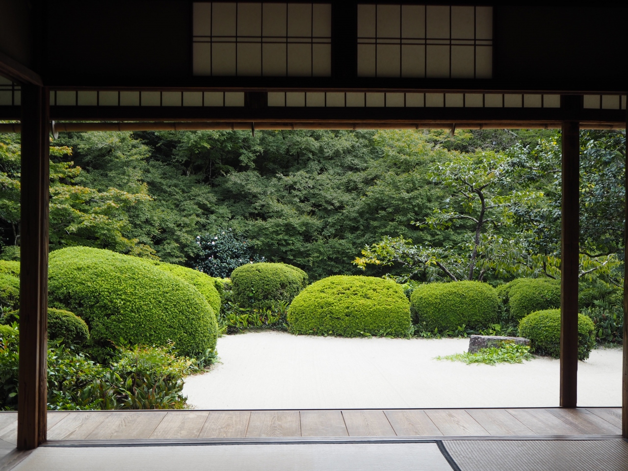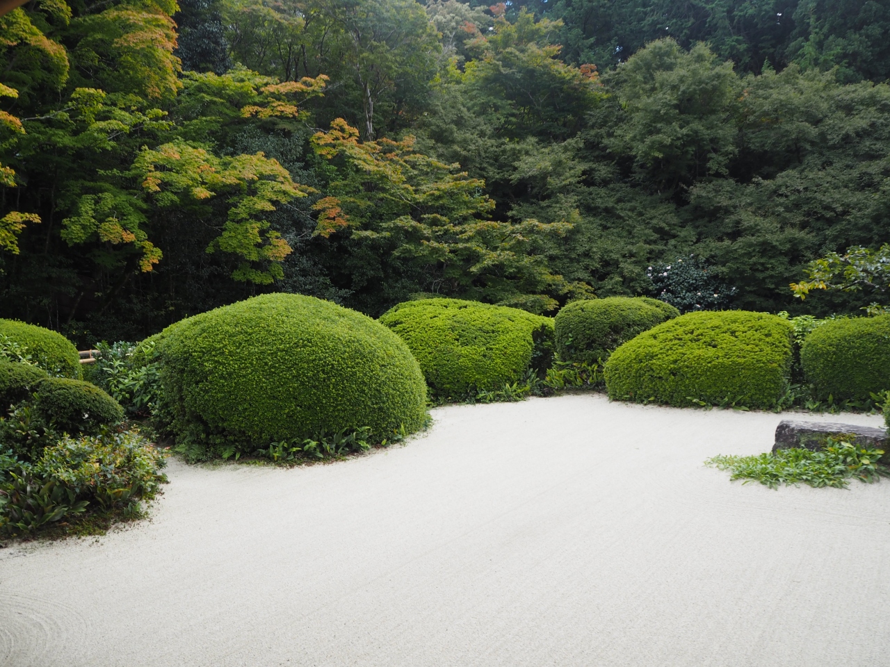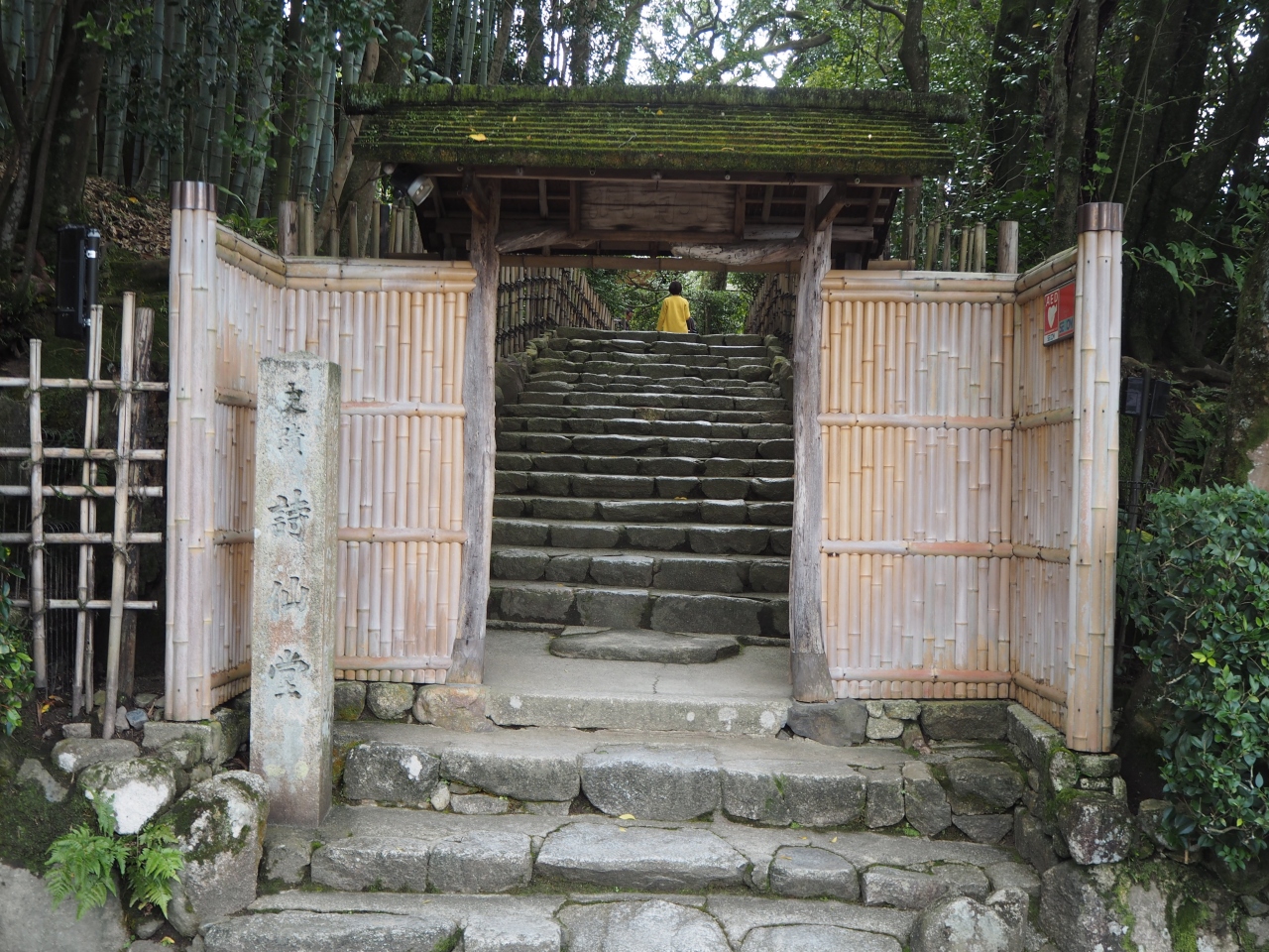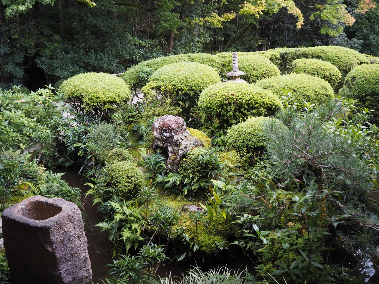 詩仙堂は一乗寺駅から東へと歩いて10分ほどです。詩仙堂は庭園がおすすめですが、邸内からの庭園の眺めもいいですが、庭へと降りて歩いて見るのもいいです。庭は結構奥行きがあります。紅葉はこれからという感じで、一部葉が色付き始めていました。平日の昼過ぎであったので、訪れる人も少なく、ゆっくりと庭園を楽しめました。