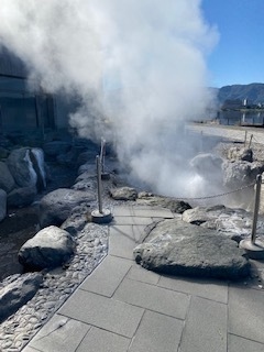 令和4年3月に突然、間欠泉の勢いが無くなったそうで、ちょっと残念でした。しかし、3階建て施設には結構見るものがあり、無料で大変良い施設でした。2Fの展示場では、諏訪地区の映画ロケ地の写真、ポスターが年度順に展示されており、あの映画もこの映画もロケ地はここかと結構楽しめました。3Fは諏訪の花火大会の写真と諏訪湖を一望できる景色、大変良かったです。